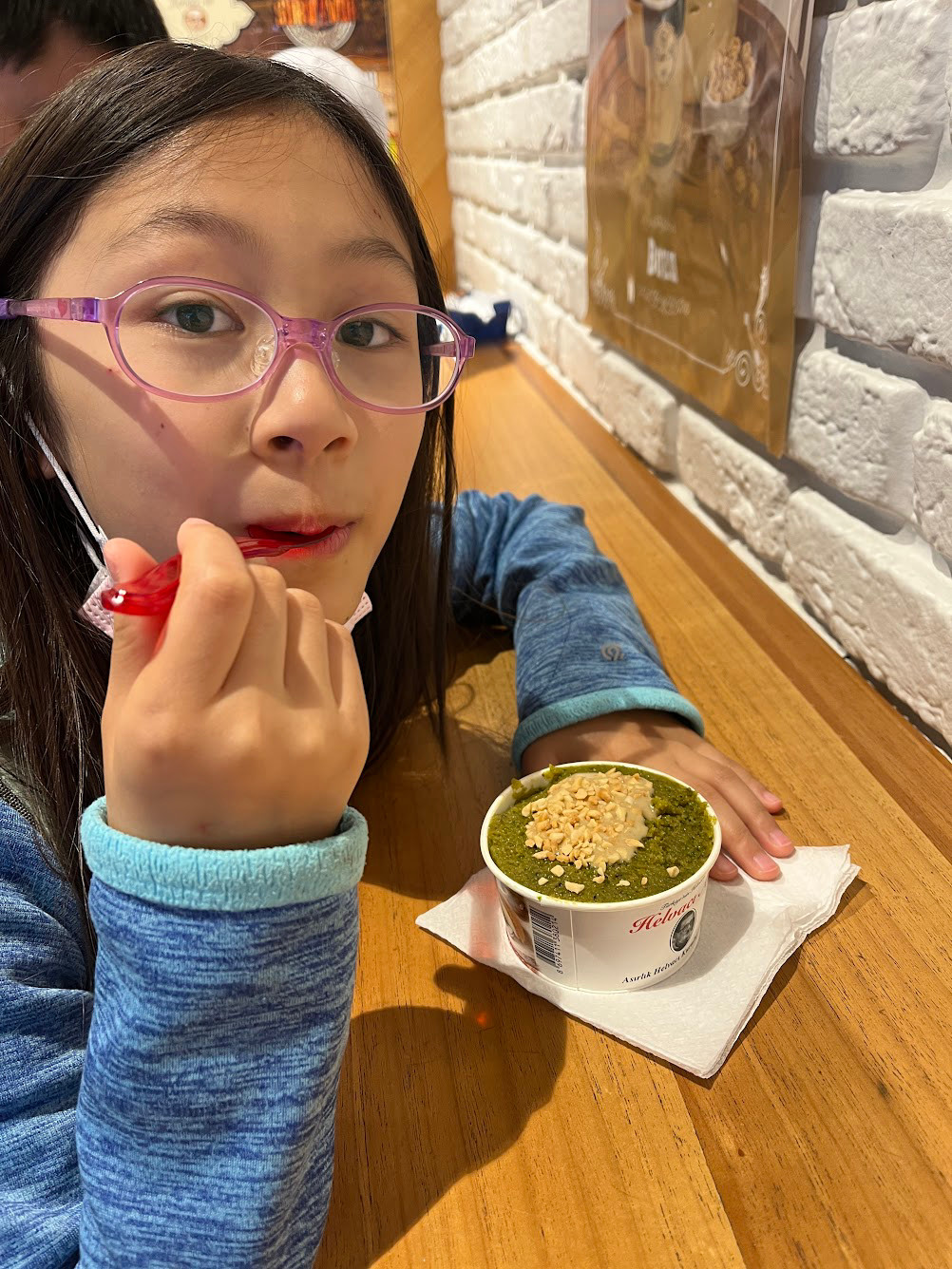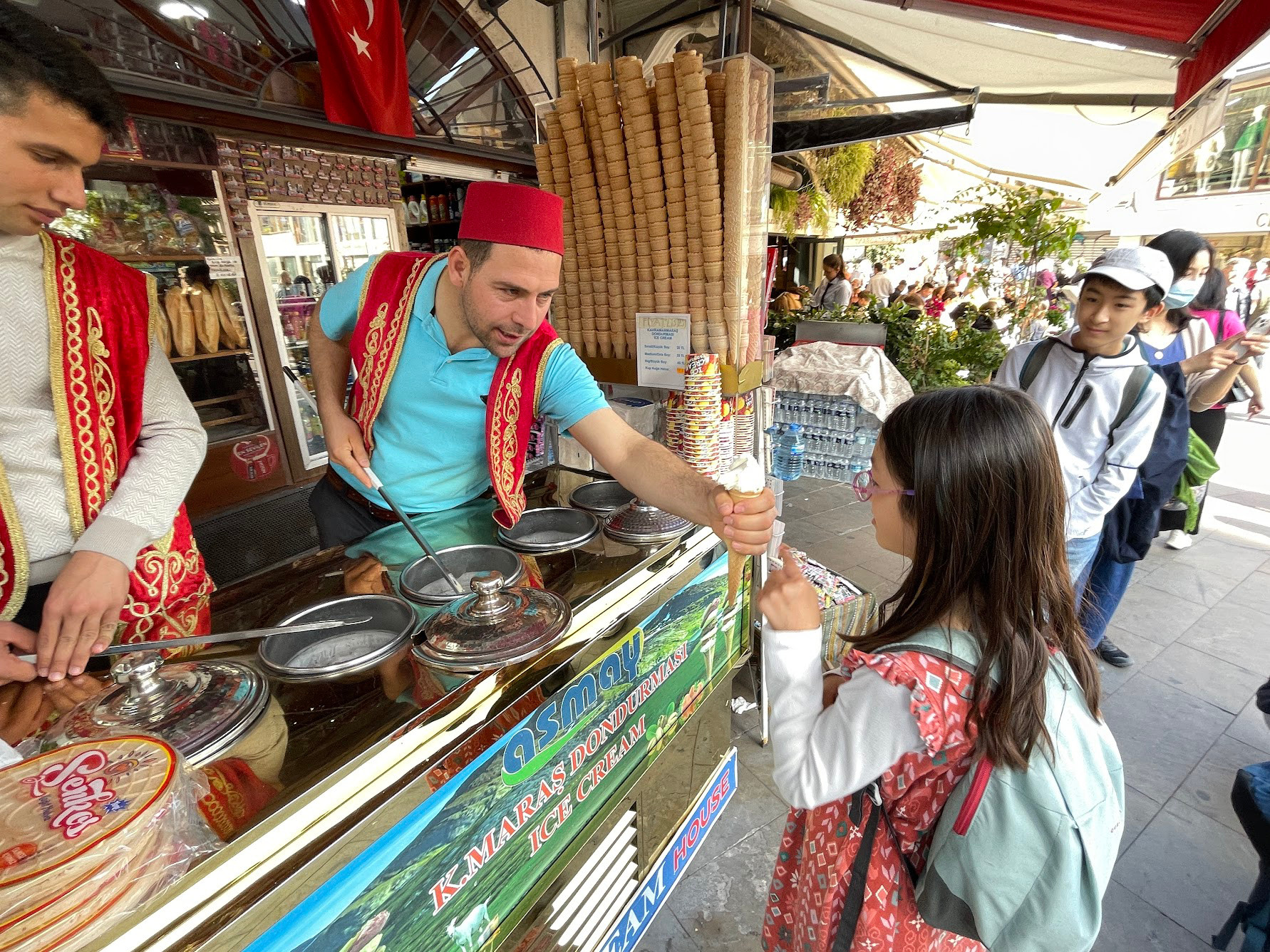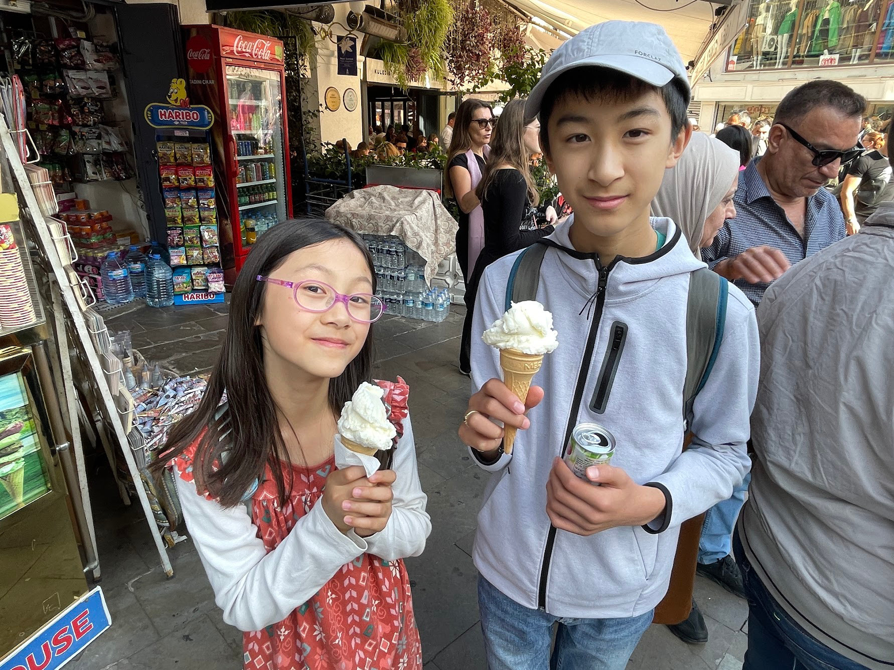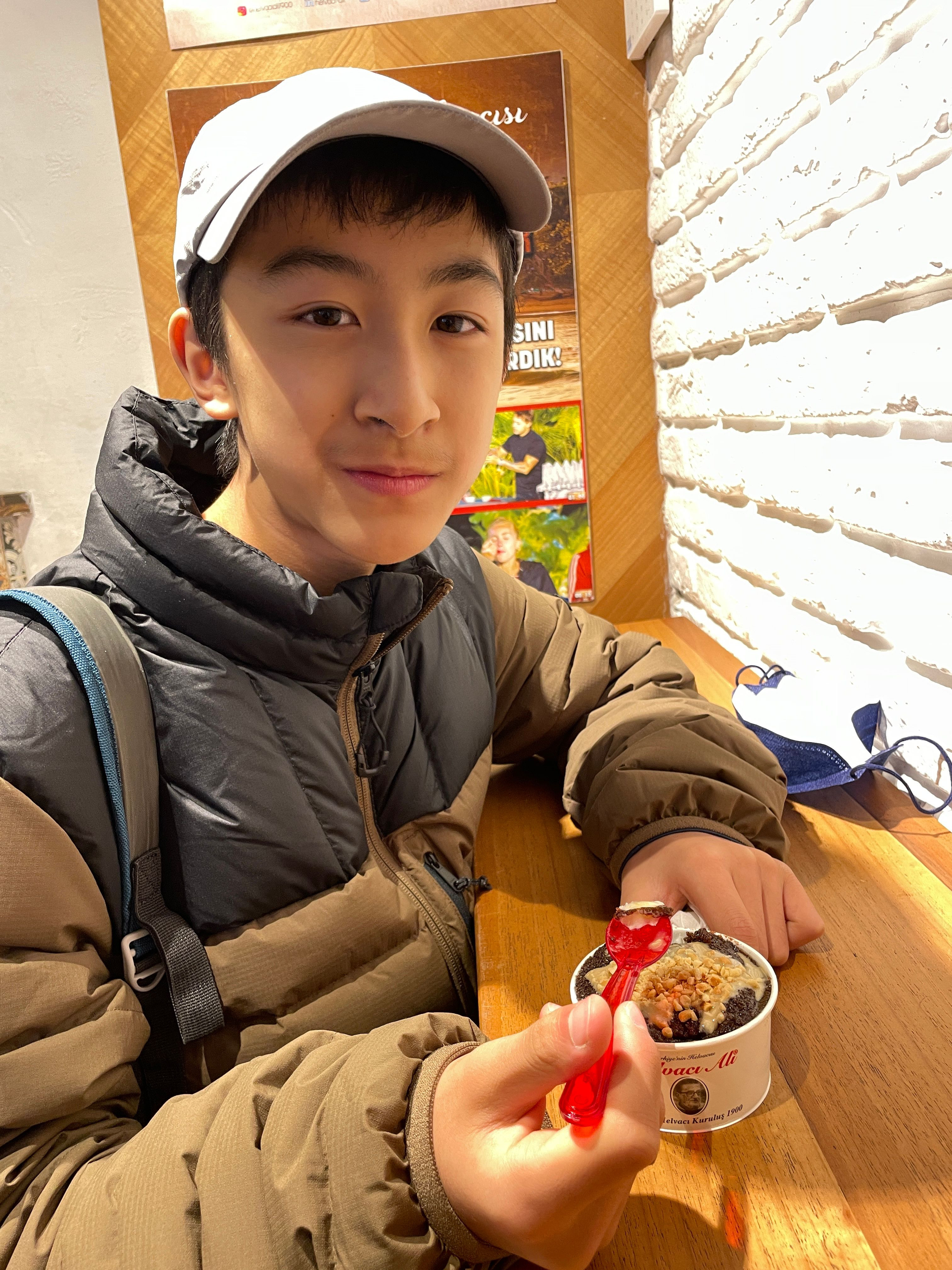 如果問孩子們,最喜歡的甜點是什麼?他們會回答土耳其冰淇淋。並不完全是因為小販逗弄人的把戲,也是因為土耳其冰淇淋黏稠的口感和香濃的奶味。和其他的冰淇淋不一樣,這裡的冰淇淋加了Salep這個原料,也是這樣才不易融化和保持黏稠。Salep是從生長於土耳其的野生蘭花莖取得的原料,在土耳其很受歡迎。天氣冷的時候,他們都會喝上一杯黏稠的熱飲,就是肉桂蘭莖奶。我們十一月要離開的時候,已經可以看到許多攤販和餐館在賣。