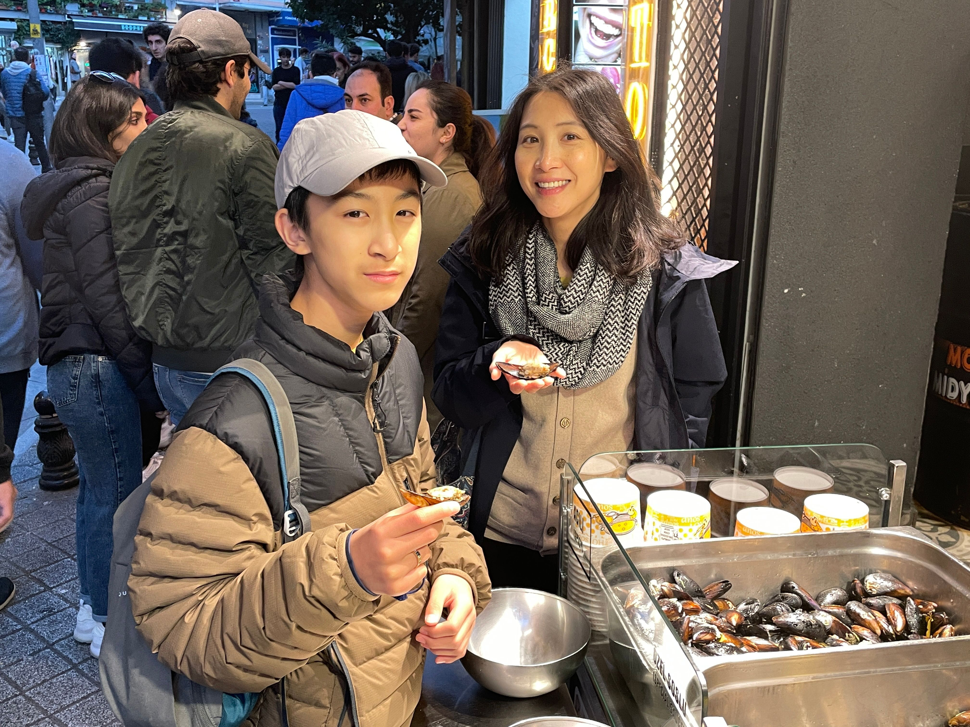 來伊斯坦堡一定要吃海鮮,這裡的海鮮豐富新鮮。街邊小吃最代表的就是 Midye Dolma。把調味過香噴噴的飯鑲進淡菜殼裡,擠上檸檬汁,一口一個,美味極了!有時候,路上小販舉著一大盤,等客人上門。
