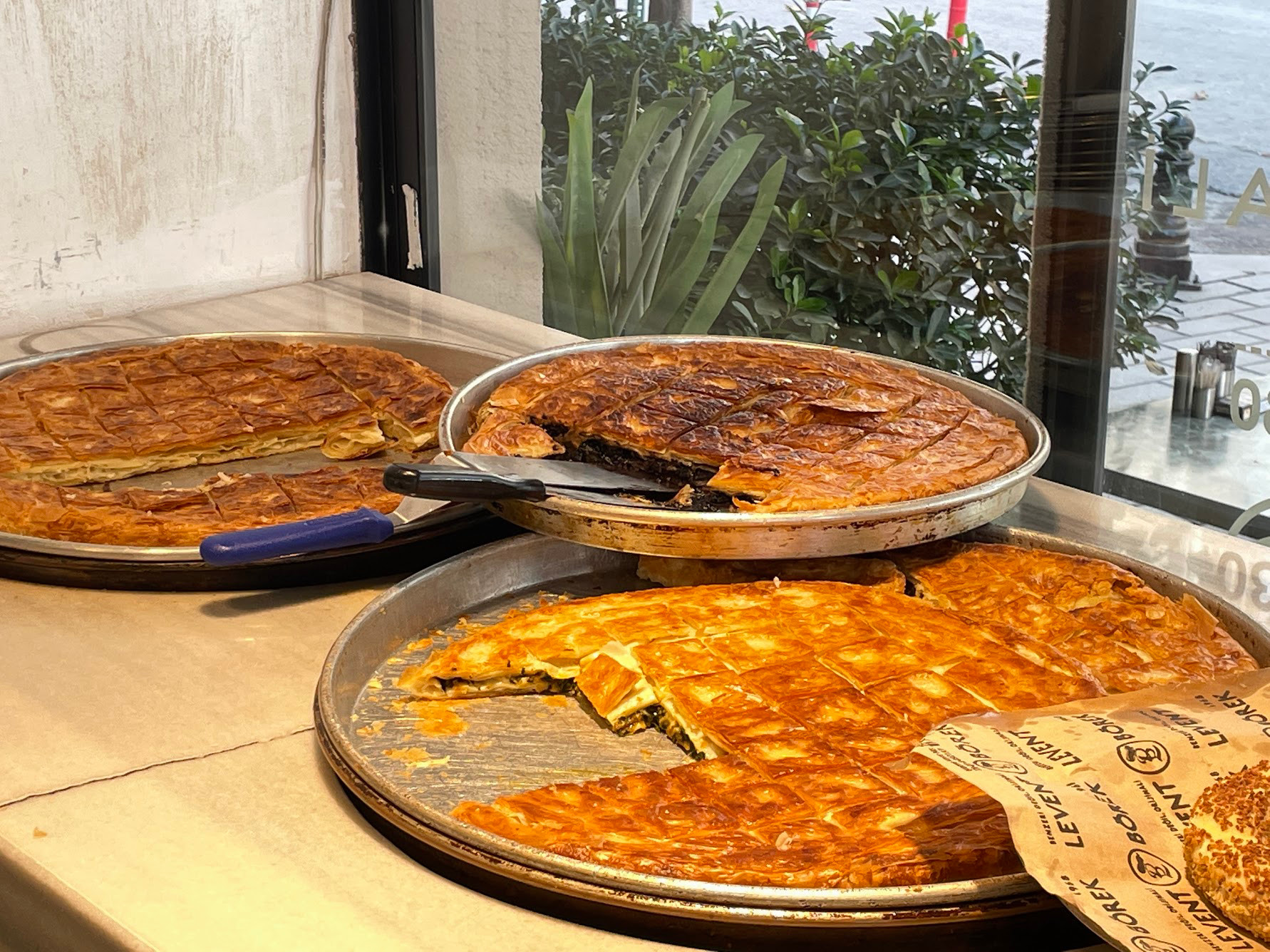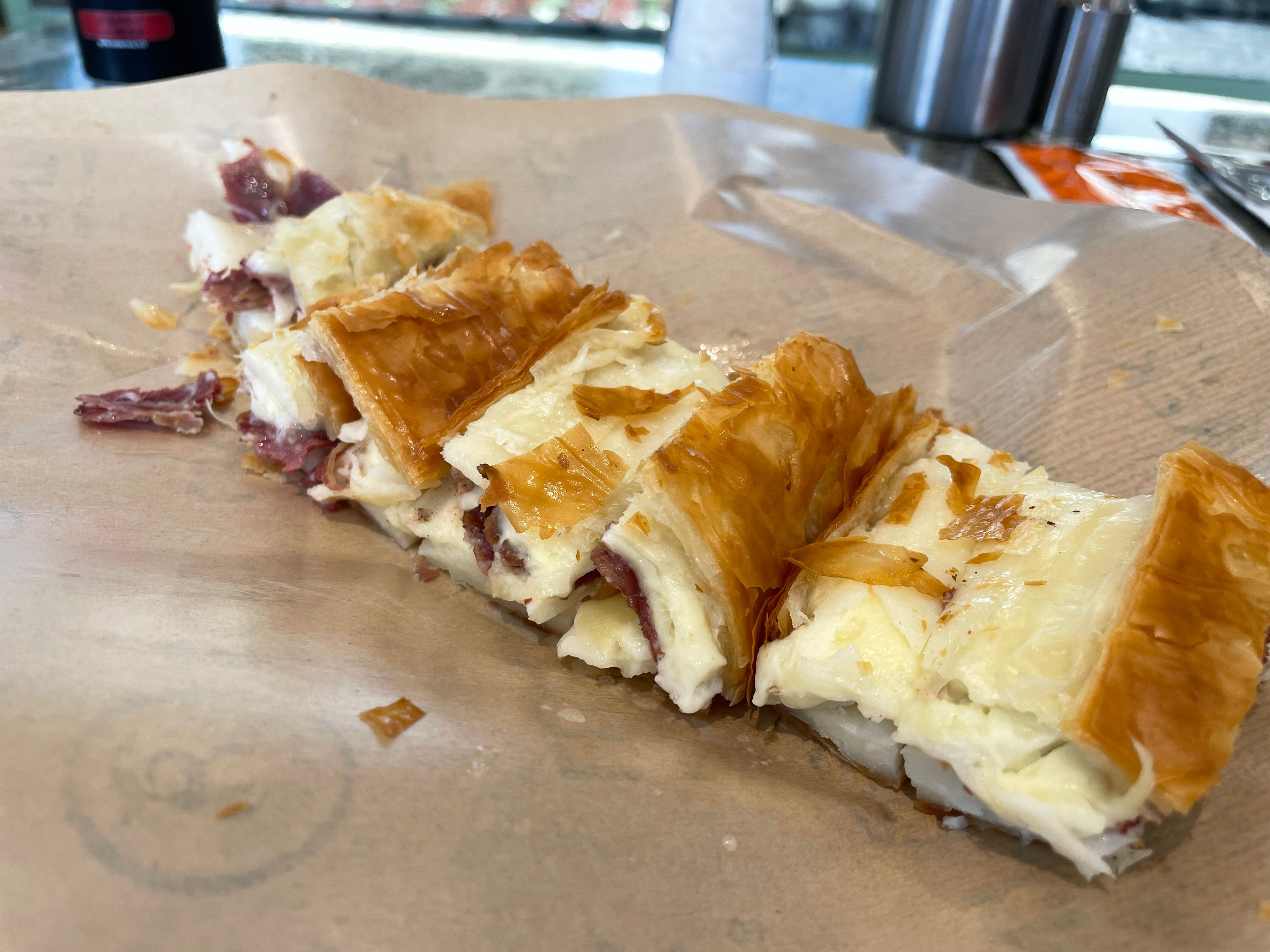 Borek是另一個受歡迎的小吃,肚子餓的時候,從麵包店買幾塊就能飽足一餐,又方便又美味。口味有很多種,我們家最喜歡燻肉口味的,也有波菜的素食口味。