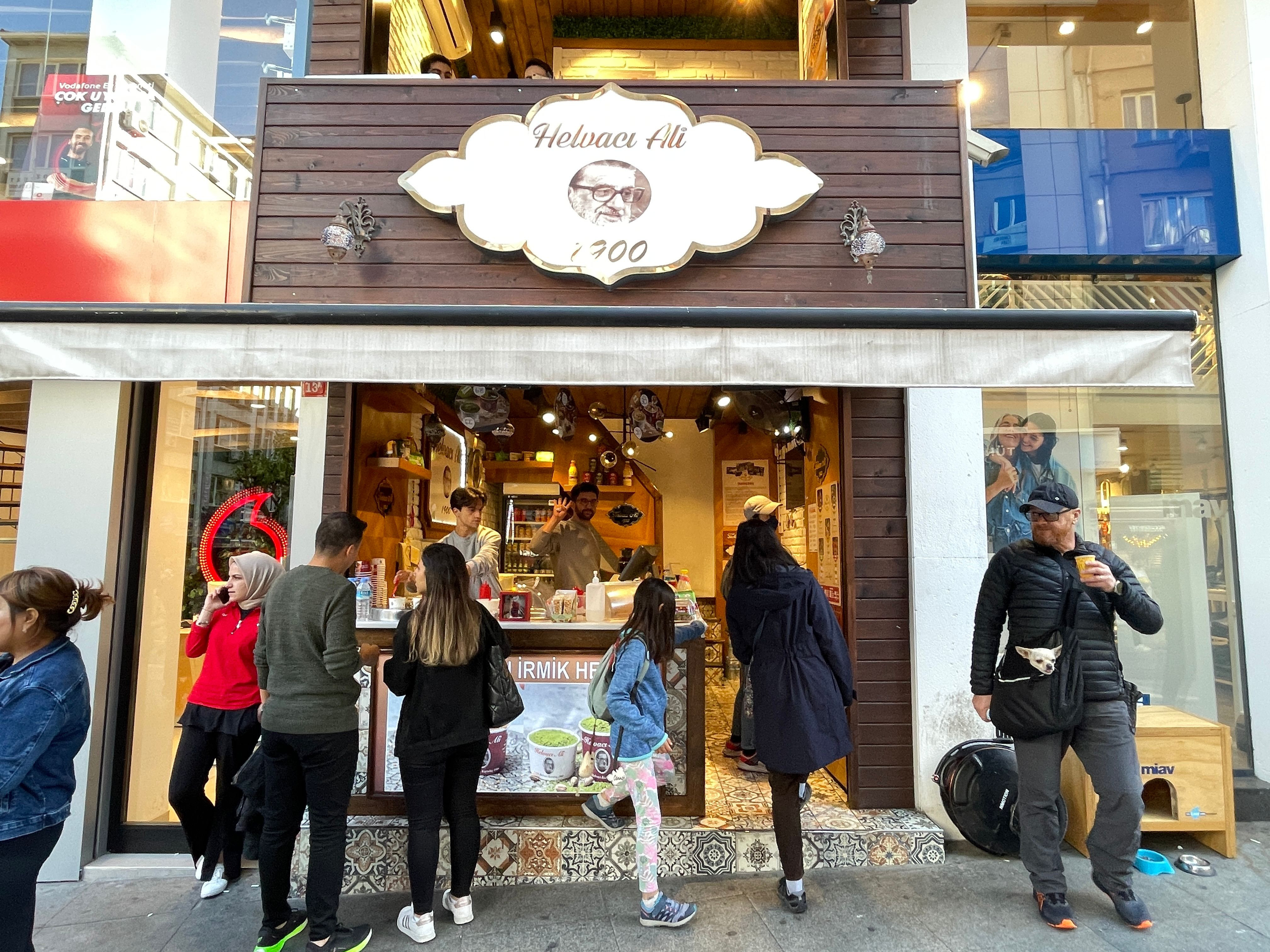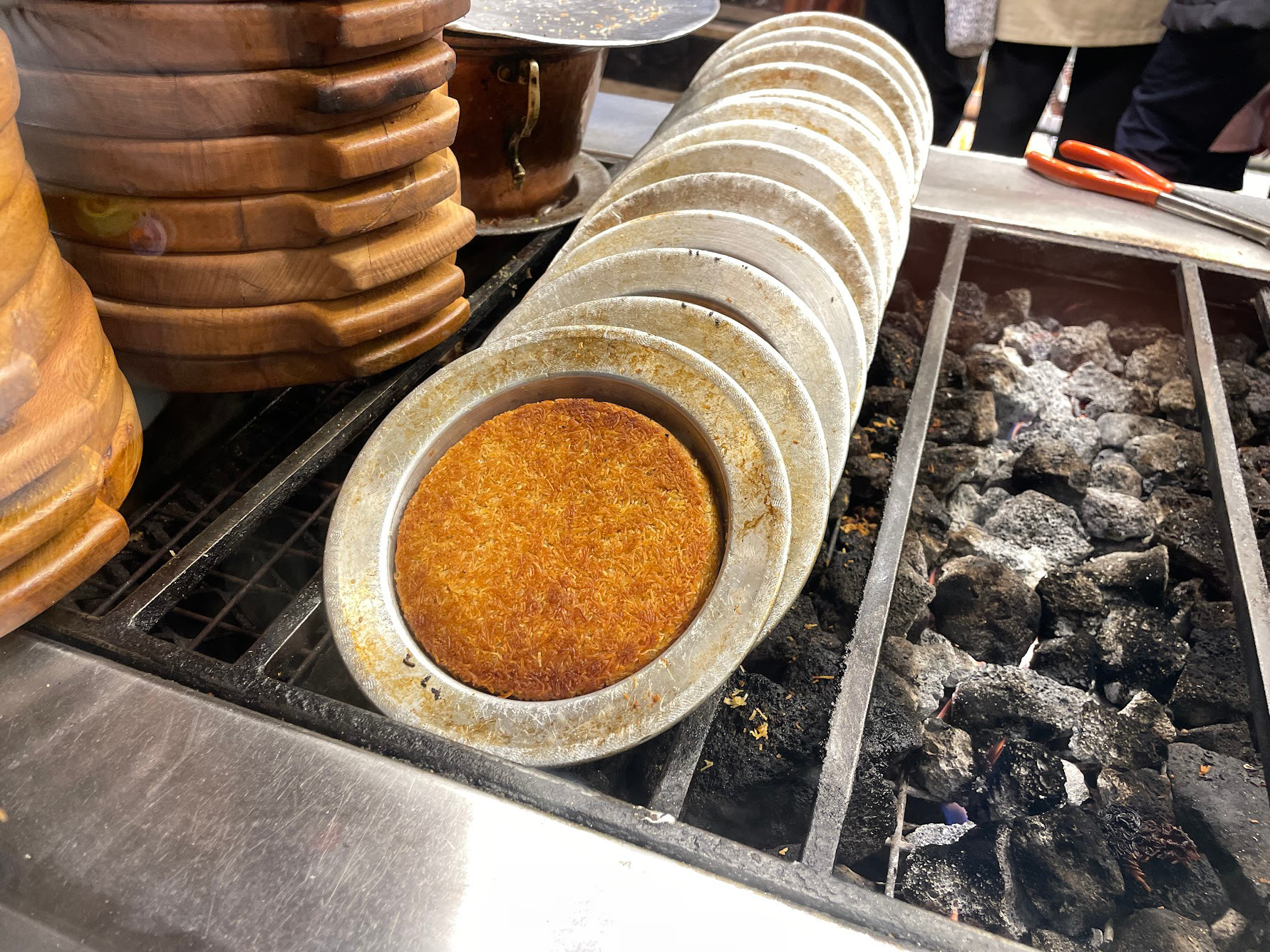 自從在杜拜吃過Kunefe後,就念念不忘。來到產地,當然要找間名店來嚐嚐。那天到市區裡觀光,看到Tatlıcı Safa門口站了一排人,看了會兒炭火烤甜點的功夫,就決定一定要來嚐嚐。果然一試成主顧,離開伊斯坦堡前,又特地來吃一次,才心滿意足的走。
