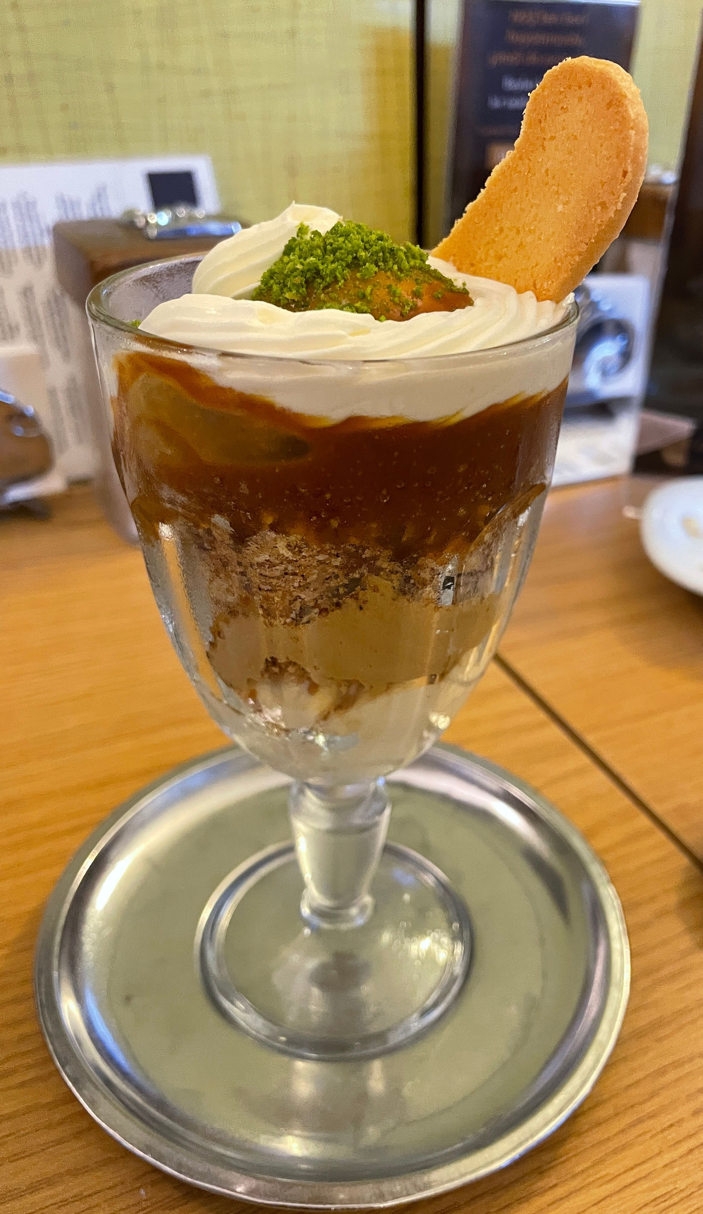 20年代的土耳其,政治局勢動盪,剛從瓦解的奧斯曼帝國轉型民主。Baylan吸引了許多藝文人士前來聚會,還開啟了一股社會主義潮流的運動 - 「Baylan Literary Movement」。兒子Harry,耳濡目染,到維也納、德國、瑞士學習後,回到伊斯坦堡,研發出到現在都還大受歡迎的招牌甜點 - Kup Griye 。我們去了兩次,兩次都點了這個聖代甜點,和苦澀的土耳其咖啡一起享用,絕配!