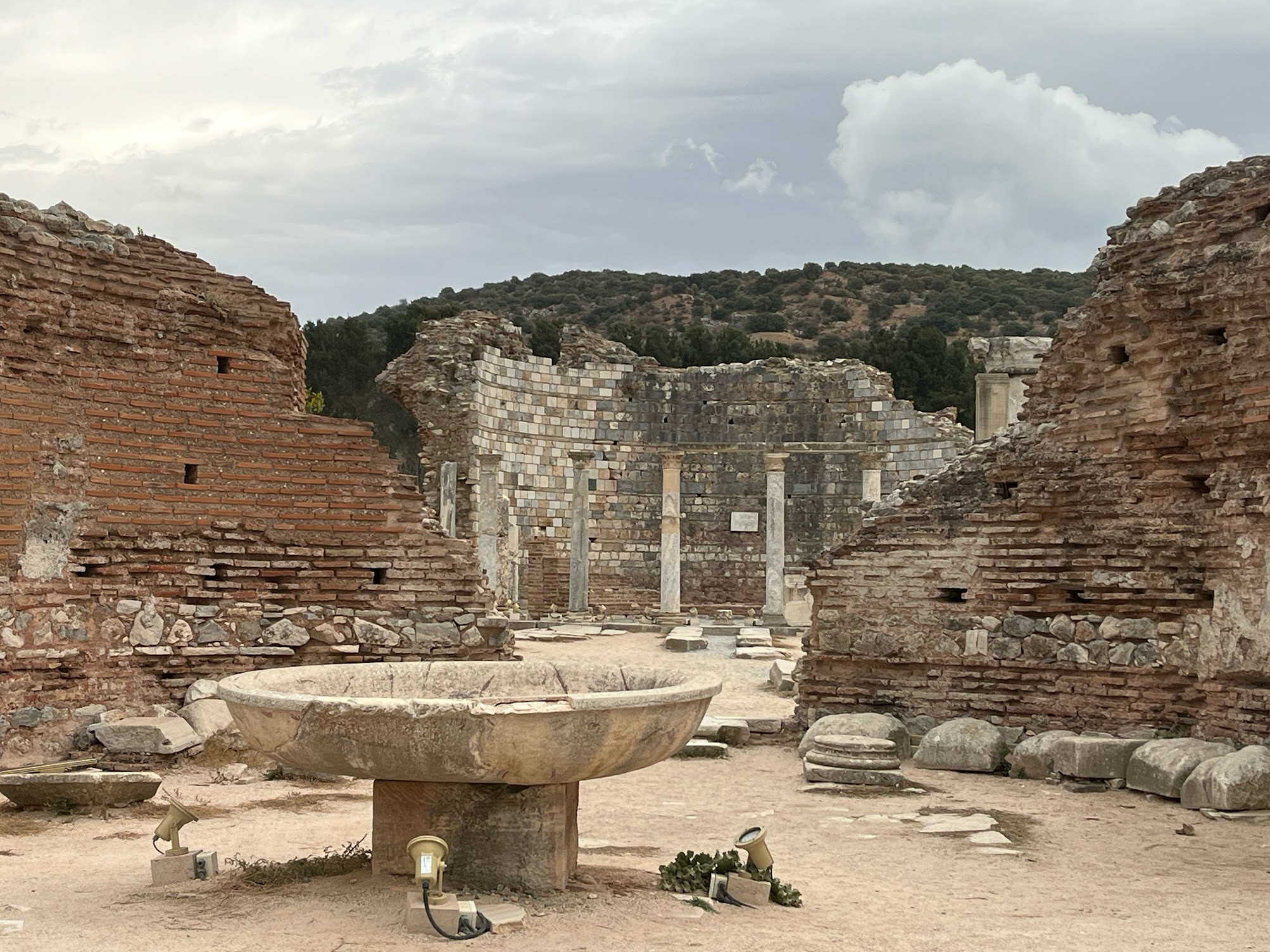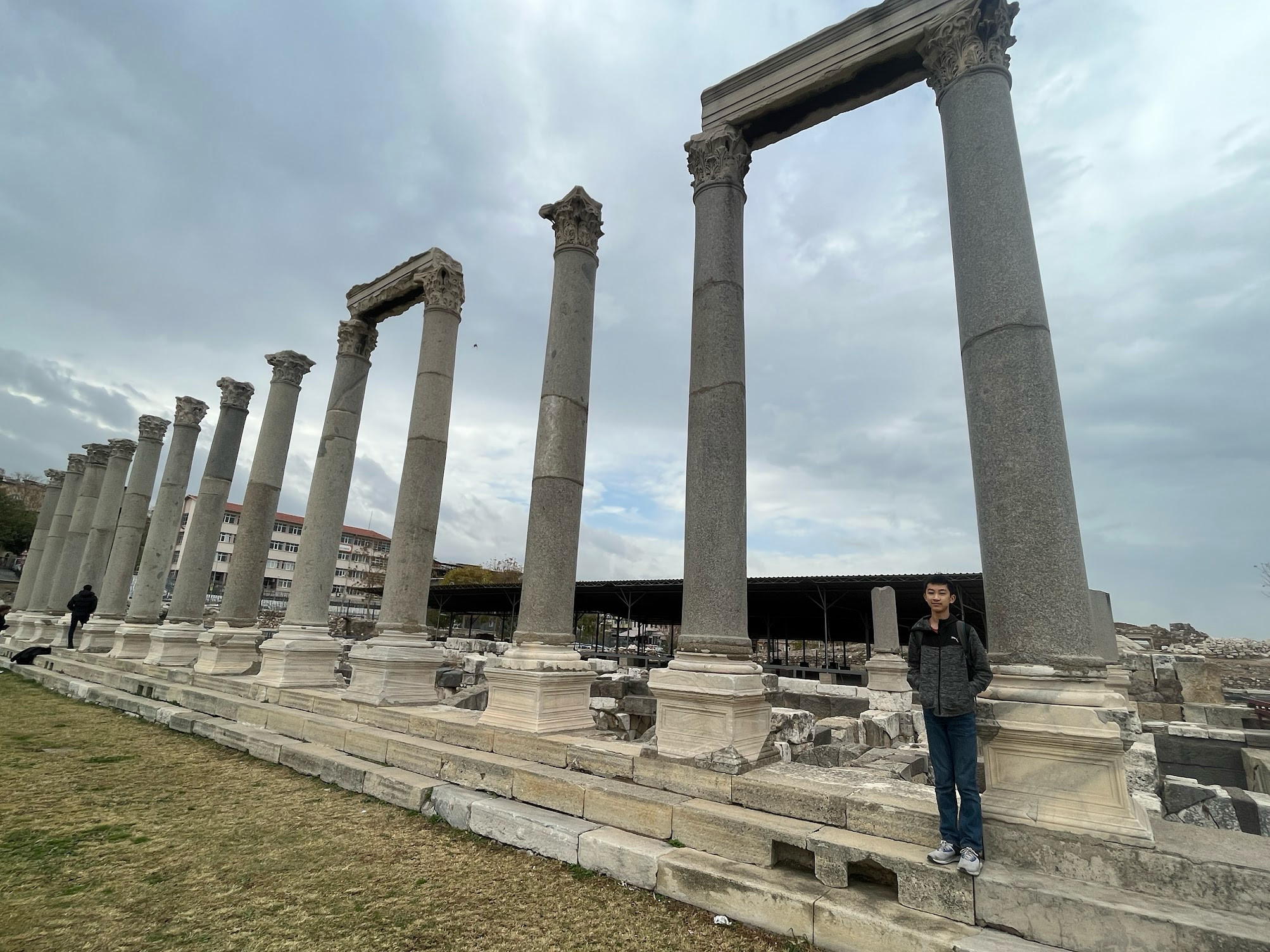 這是一座市集遺跡,清晰可見柱子、排水、飲水系統以及拱門等的建築結構,想到這些是從4世紀留下的柱子,就很興奮的用手觸摸,但是一旁還有成千上百的石塊等待拼湊復原。