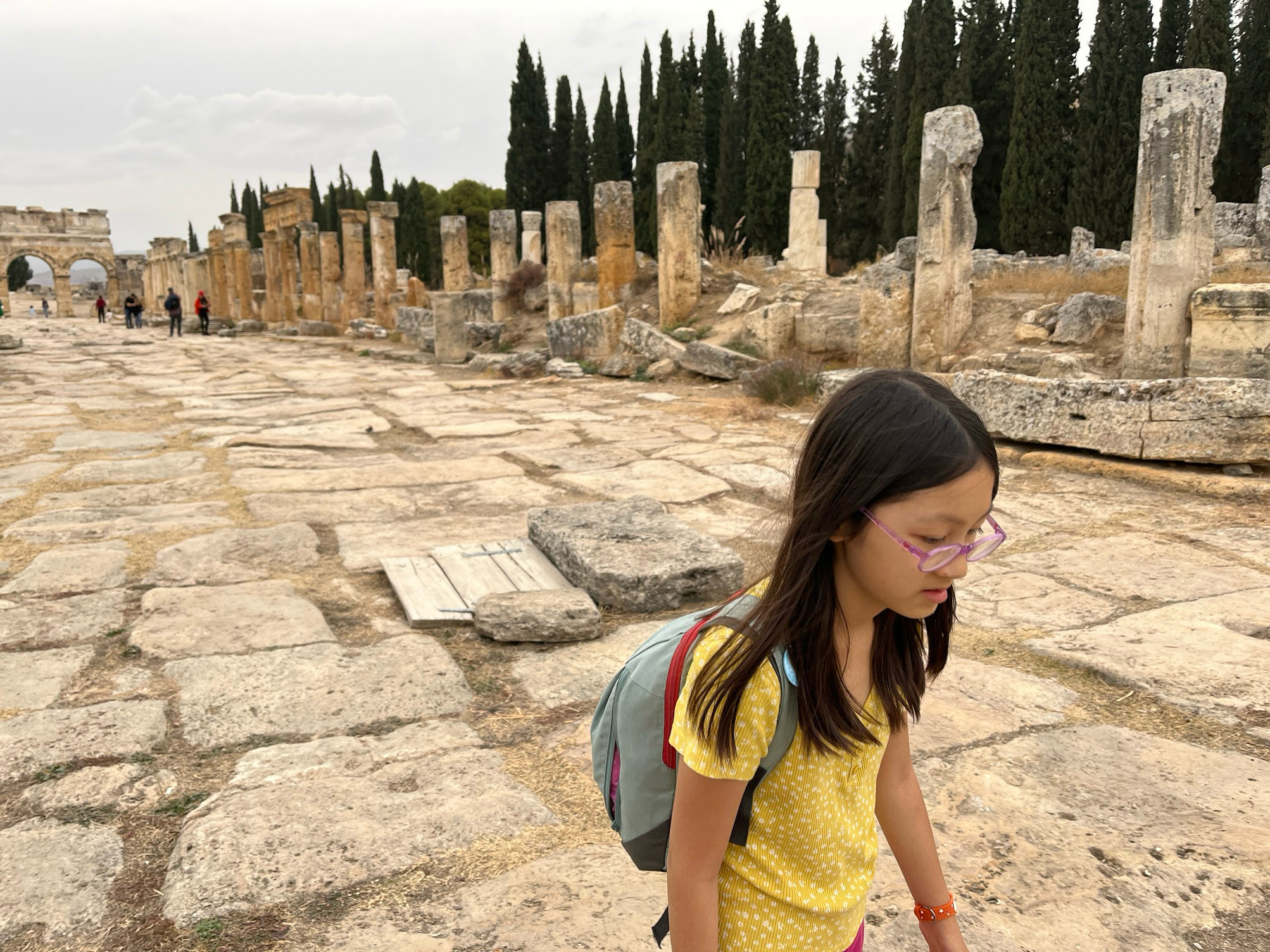 傳說中埃及艷后曾來泡過的溫泉,我們第一天錯過了,隔天準備好泳衣,再次進入希拉波利斯遺跡。這個溫泉經驗真的是此生難忘,先不說埃及艷后是否真的來過,光是泡在滿佈羅馬柱和基座的池子裡就不虛此行,而且碳酸泉水的獨特小氣泡,黏在身體上,摸起來滑滑的,好神奇!