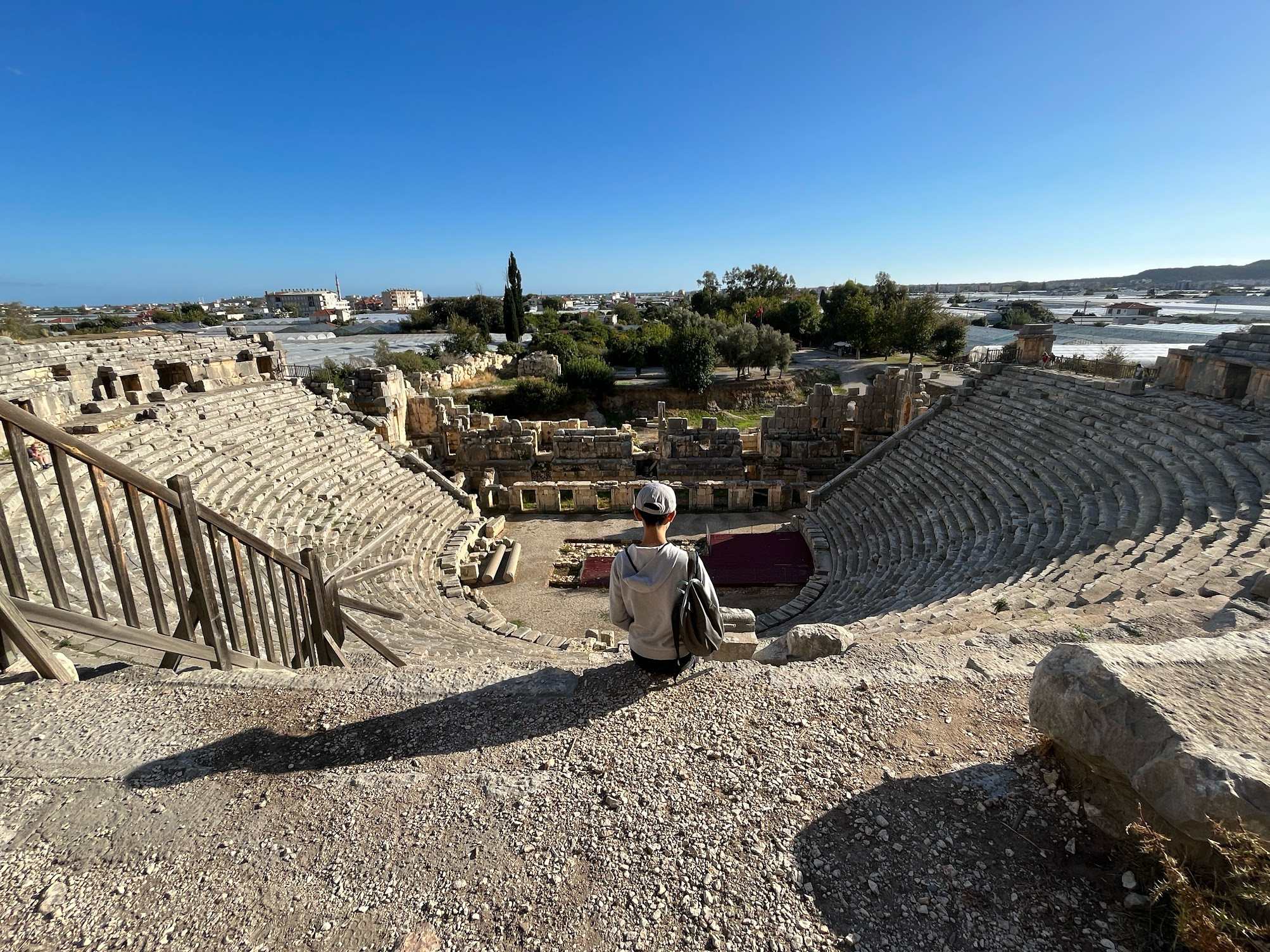 路上會經過另一個呂基亞人城市 - 利米拉(Limyra),我們便停下來看看這座古城遺址。早在西元前2世紀,這裡就是希臘世界重要的貿易點,曾經風光一時,但是現在整個被河水淹沒,只能看見零星的石牆、石柱散落在河水裡。 旁邊還有一個頗大的羅馬劇場在旁,可見直到羅馬時代,這裡都還是興盛的城市。