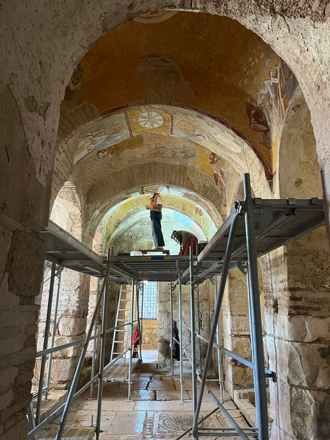 去的時候剛好有修復人員在修復屋頂上的壁畫,第一次看人修復這麼古老的壁畫,很是新奇,也對他們嚴謹的工作態度佩服。