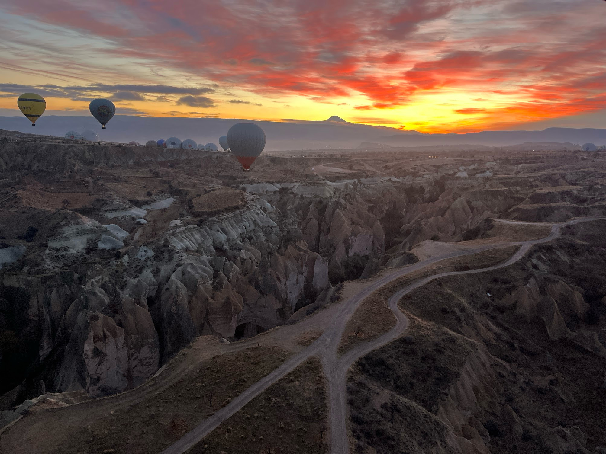 在卡帕多奇亞我們只預計停留兩晚,格雷梅地處高原,時間又已接近12月,溫度遽降,第二天早上開往格雷梅的路上居然下起雪了,看樣子熱氣球是無望了!打電話給熱氣球公司聯繫,他們居然說明天一早應該可以起飛,雖然心有疑慮,還是把搭乘熱氣球的時間改到隔天一大早。