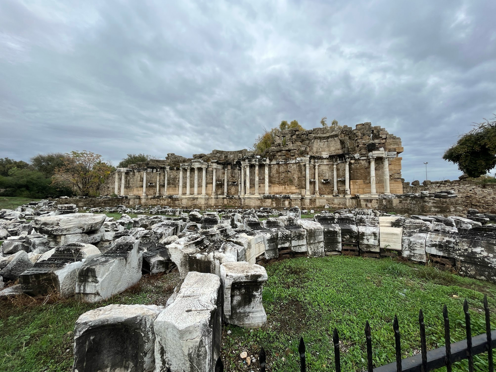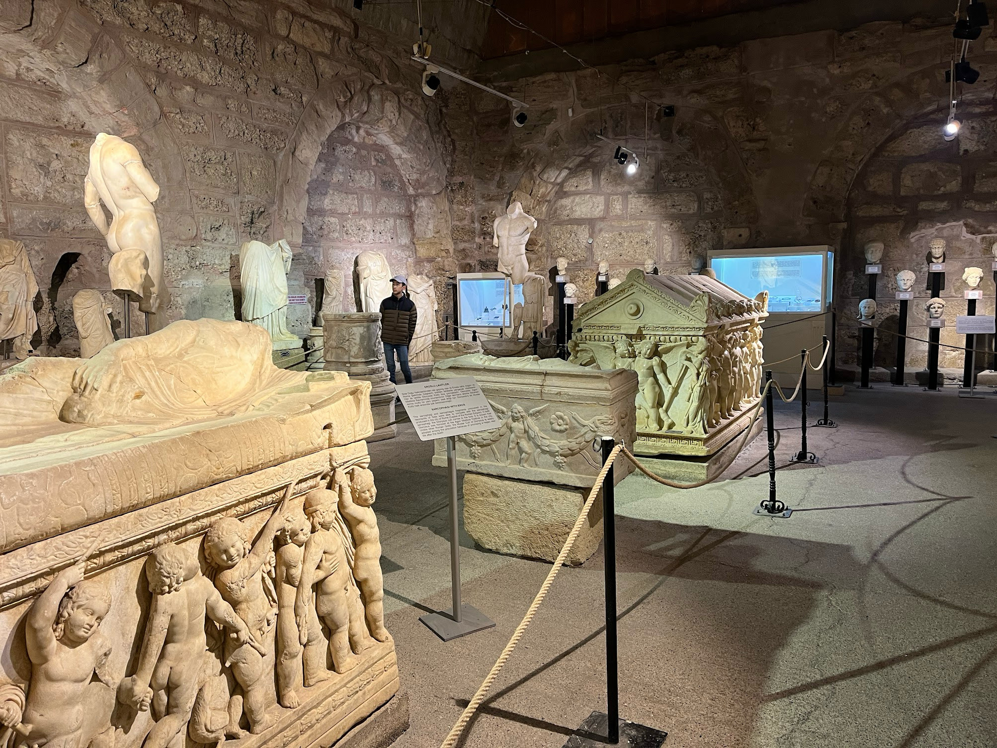 到達位於海邊的古蹟時,天氣不好,看起來隨時要下大雨,後來真的開始飄起細雨,我們趕緊躲進羅馬浴場改建的博物館,裡面又是希臘羅馬石像和浮雕,讓我們再次驚嘆土耳其豐富的歷史遺產。