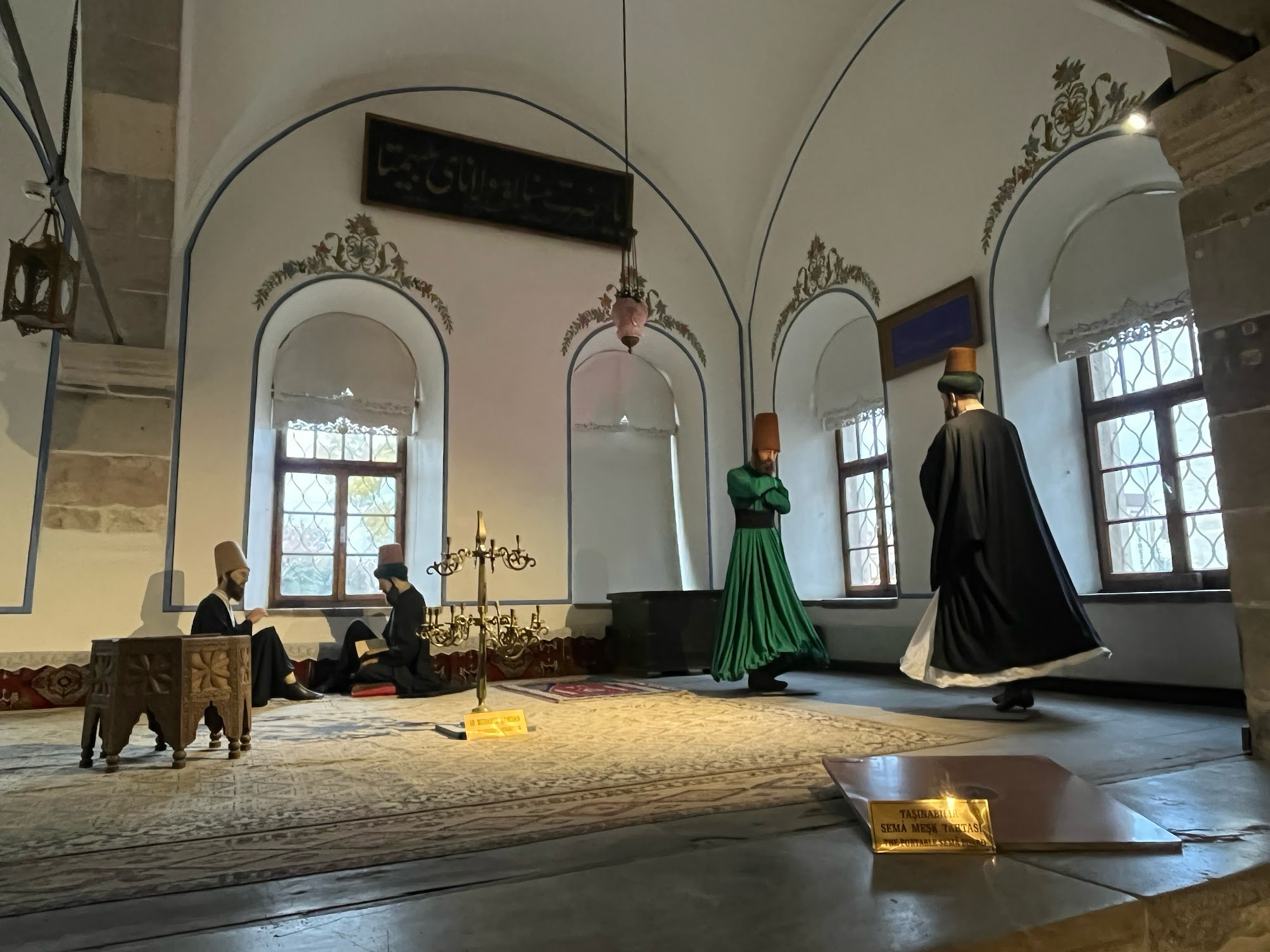 孔亞是蘇菲教派的大本營,偉大的波斯詩人魯米在此寫下重要的伊斯蘭文學、實踐蘇菲主義。魯米,土耳其人稱Mevlâna,西方人則稱Rumi,在他帶領下的蘇菲教徒嚴守清規,通過冥想、讀經來接觸阿拉,其中最出名的就是「旋轉舞」,它其實不是一種舞蹈,而是教徒透過不間斷的旋轉來提昇靈魂的修行方式。 我們在孔亞的時間不多,沒有機會體驗這個特別的宗教儀式,但是去參觀了Mevlâna Museum。