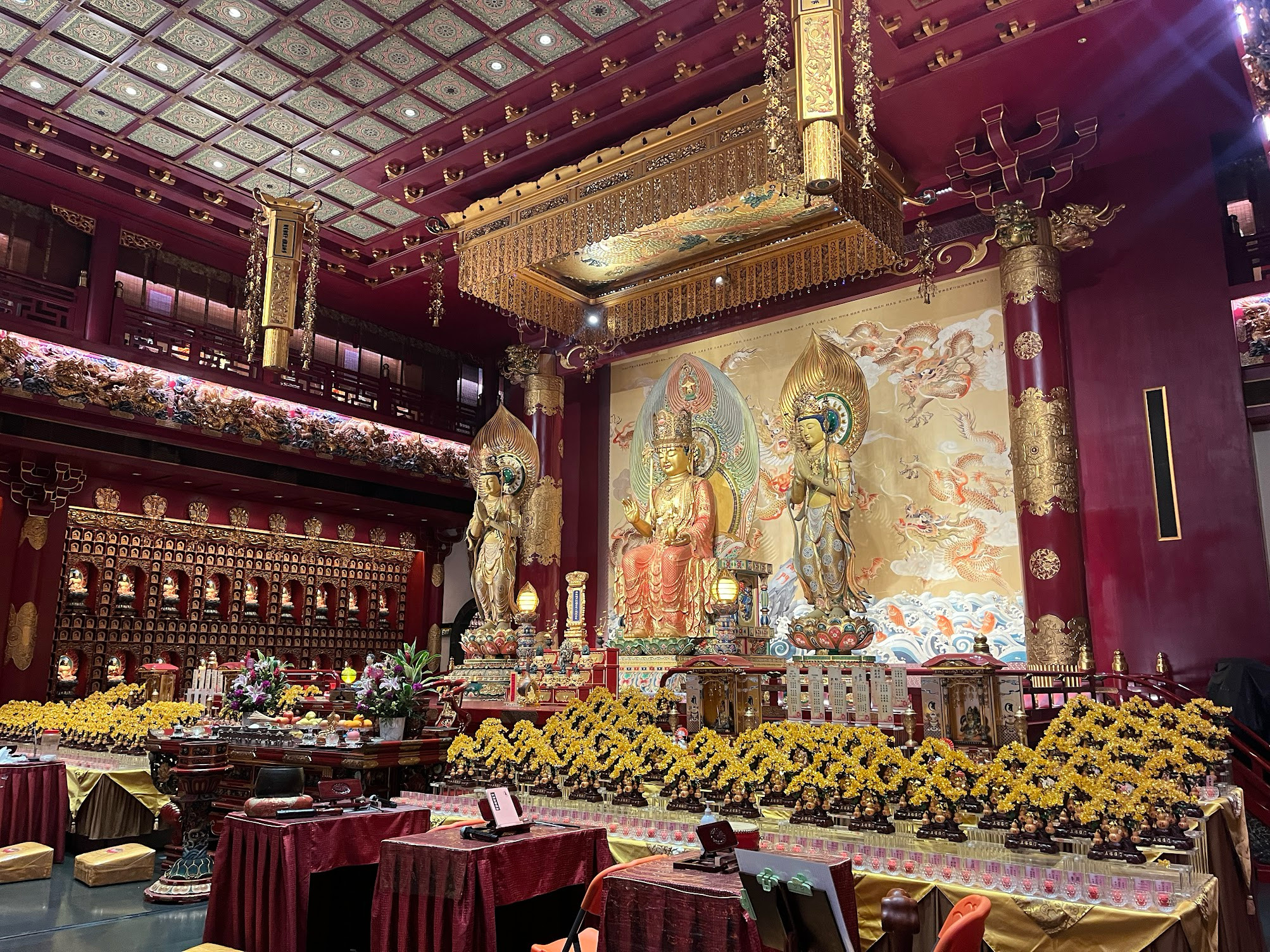 新加坡的華人文化是主流,華人人口佔絕大多數,這裡的唐人街有個有趣的名字,叫「牛車水」。中心有座佛牙寺,修得宏偉莊嚴,有5層樓高,據說存有釋迦摩尼的佛牙舍利。我們也不是佛教徒,但有佛必拜,跟著進香人潮拜了一圈。
