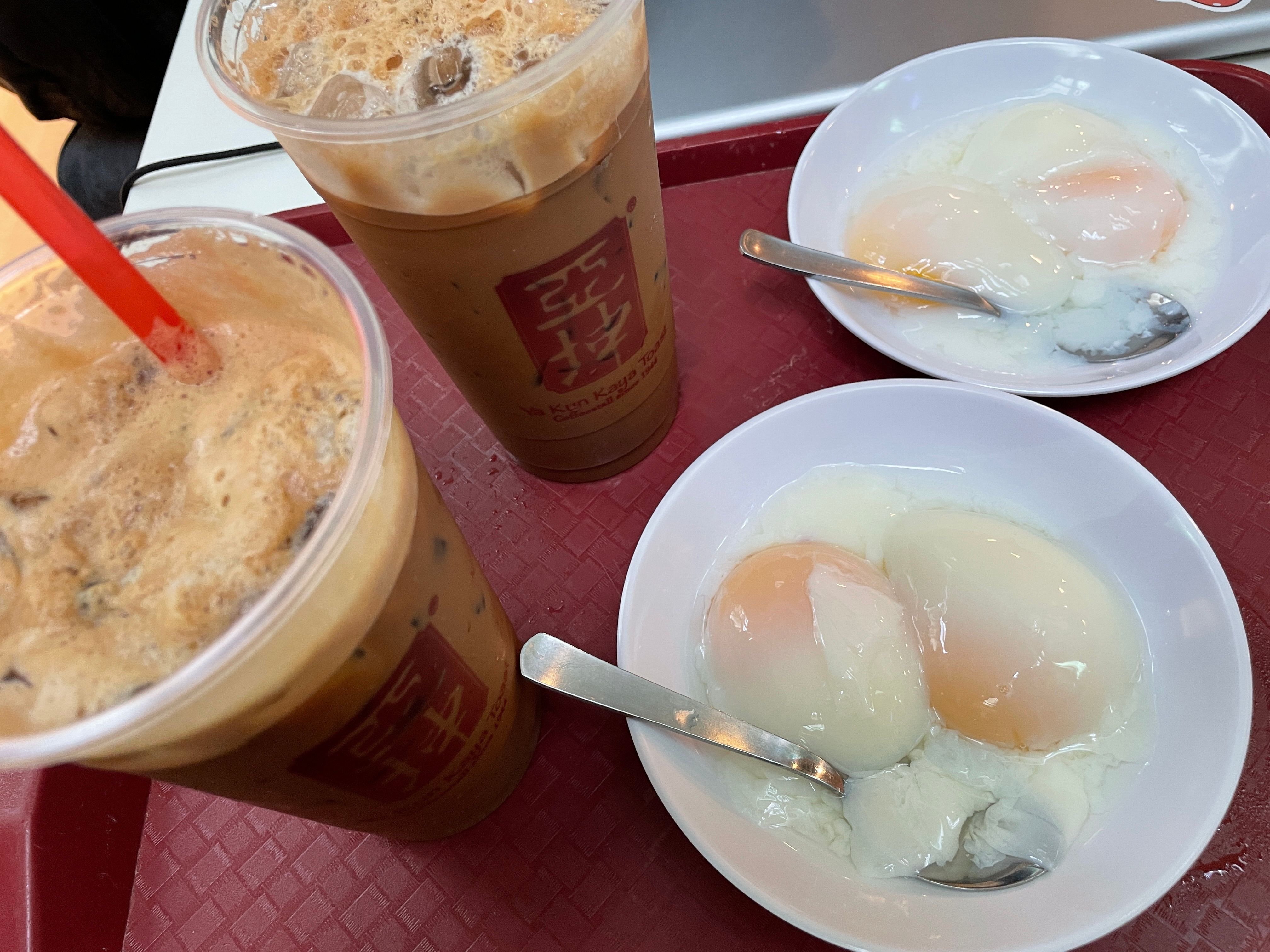 在機場吃到新加坡的經典早餐 -「亞坤」,和之前在吉隆坡的海南咖啡店類似,都有半熟蛋和咖椰吐司,忍不住又點了烤吐司和蒸吐司兩種,香甜吐司配上滑嫩雞蛋,再喝口冰咖啡,也難怪是經典早餐了,滋味真讓人念念不忘。