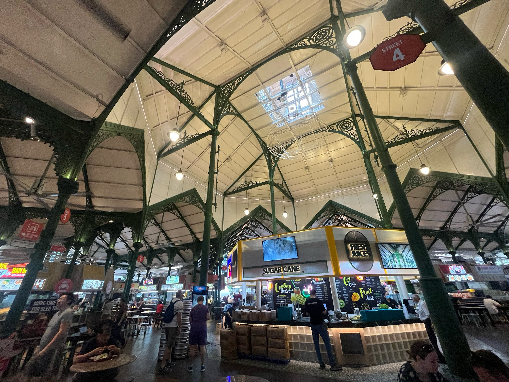 朋友帶我們去老巴剎美食廣場(Telok Ayer Market),古舊的維多利亞時代建築改建,保留有鑄鐵建築骨架和鐘塔。來到新加坡,一定要試試海南雞飯,感覺是非正式國菜,果然皮彈滑、肉質鮮嫩,但個人認為靈魂在吸滿雞汁的米粒。相比之下,小孩覺得土耳其的香料飯 pilaf更好吃,香料配上烤肉kebab滴下的油脂,無敵。我也試了擂茶,台馬擂茶大不同,擂茶隨著大批移民來到了大馬,其中又以河婆客的擂茶做得最出色,因此店家招牌經常標榜「河婆擂茶」,「河婆」與「擂茶」這兩個名詞就像「海南」和「雞飯」一般黏在一塊了,好像不掛上河婆二字就不正宗似的。臺灣的「客家擂茶」與「大馬擂茶」最大不同的,就是前者是甜的,被視為飲品;後者是鹹的,當作飯湯主食,我還是吃不習慣,但算是長了見識。