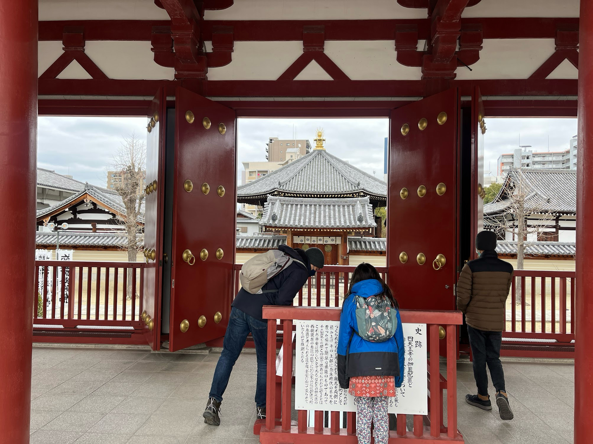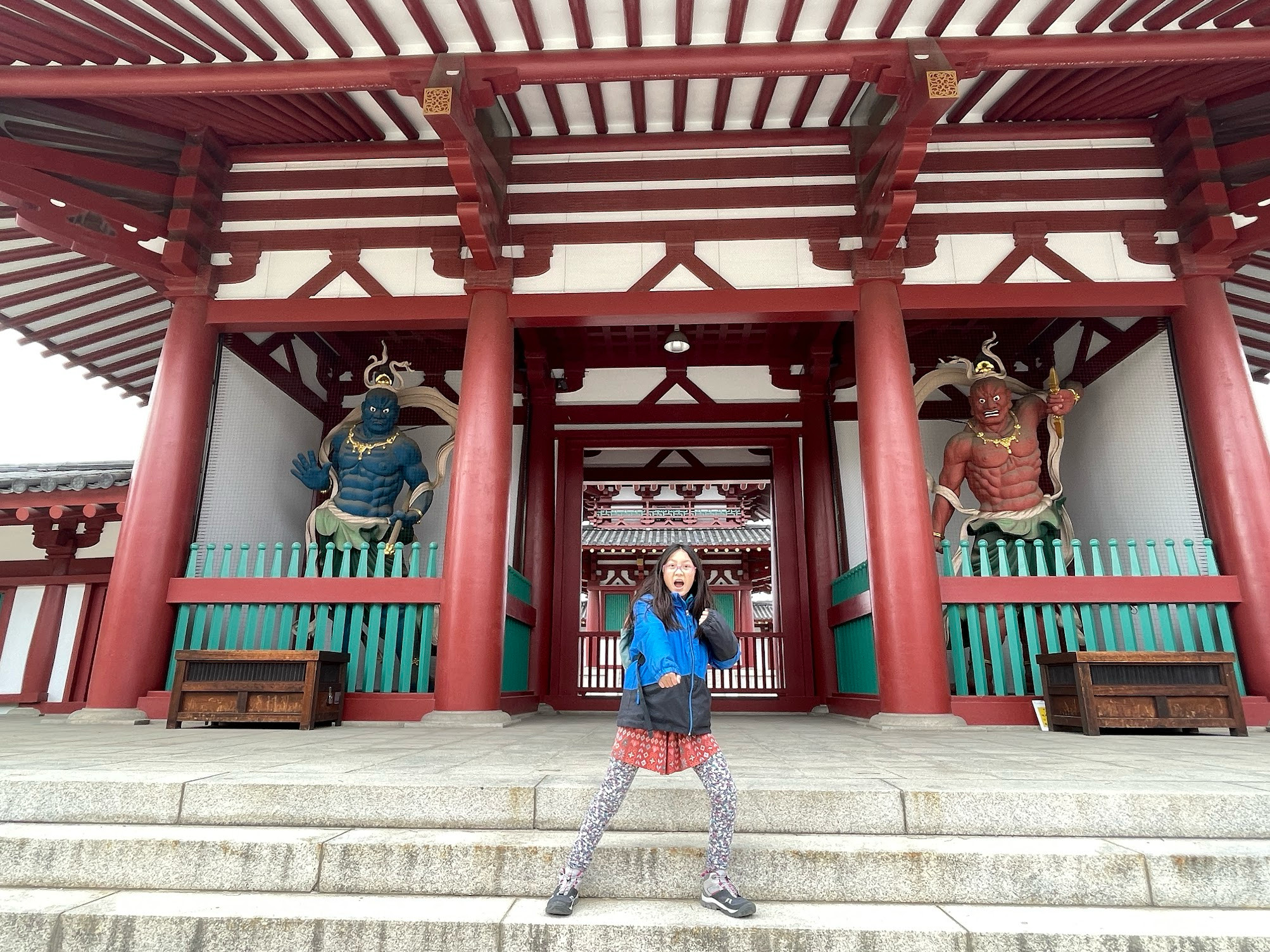 接下來前往四天王寺,我們在netflix上看了一個卡通Oni,以日本神怪為背景,主角是風神和雷神,所以特意帶燕朝聖四天王寺門口的風神雷神。