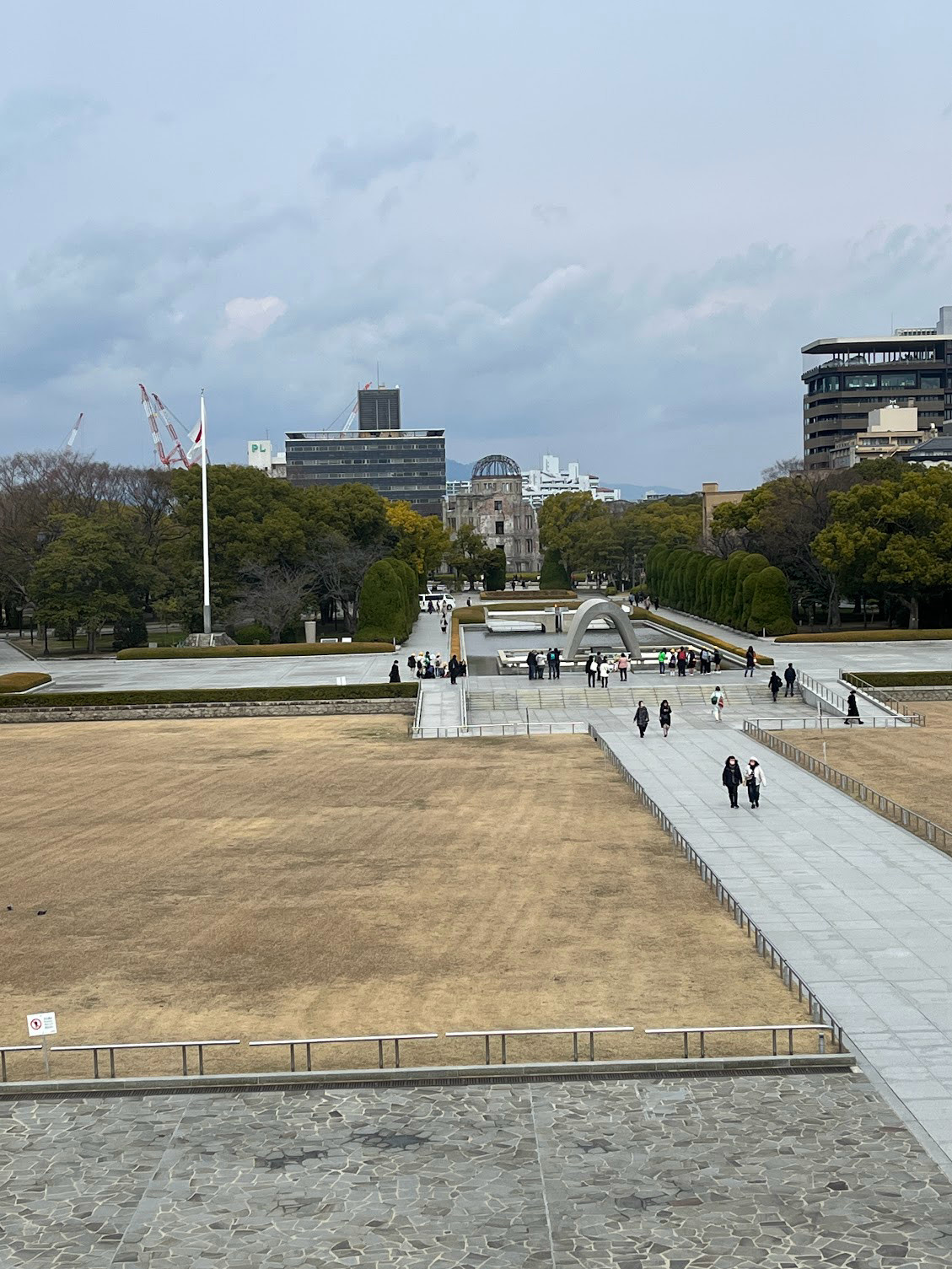 也有比較衝擊的資料照片,人被炸得體無完膚,大多當場痛苦的死去,生還者則繼續對抗生理與心理的折磨,活在人間煉獄裡。孩子們選擇不進去資料館,我含淚看完整個展覽,出來後心情無比承重,當眼睛一適應大片落地窗外透進的和平陽光,眼淚便流下來了,看著外面整齊的花圃、水池、散步的遊人,淚流不止。心裡不停默問:「為什麼?為什麼?為什麼人類要如此對待其他人類?」。