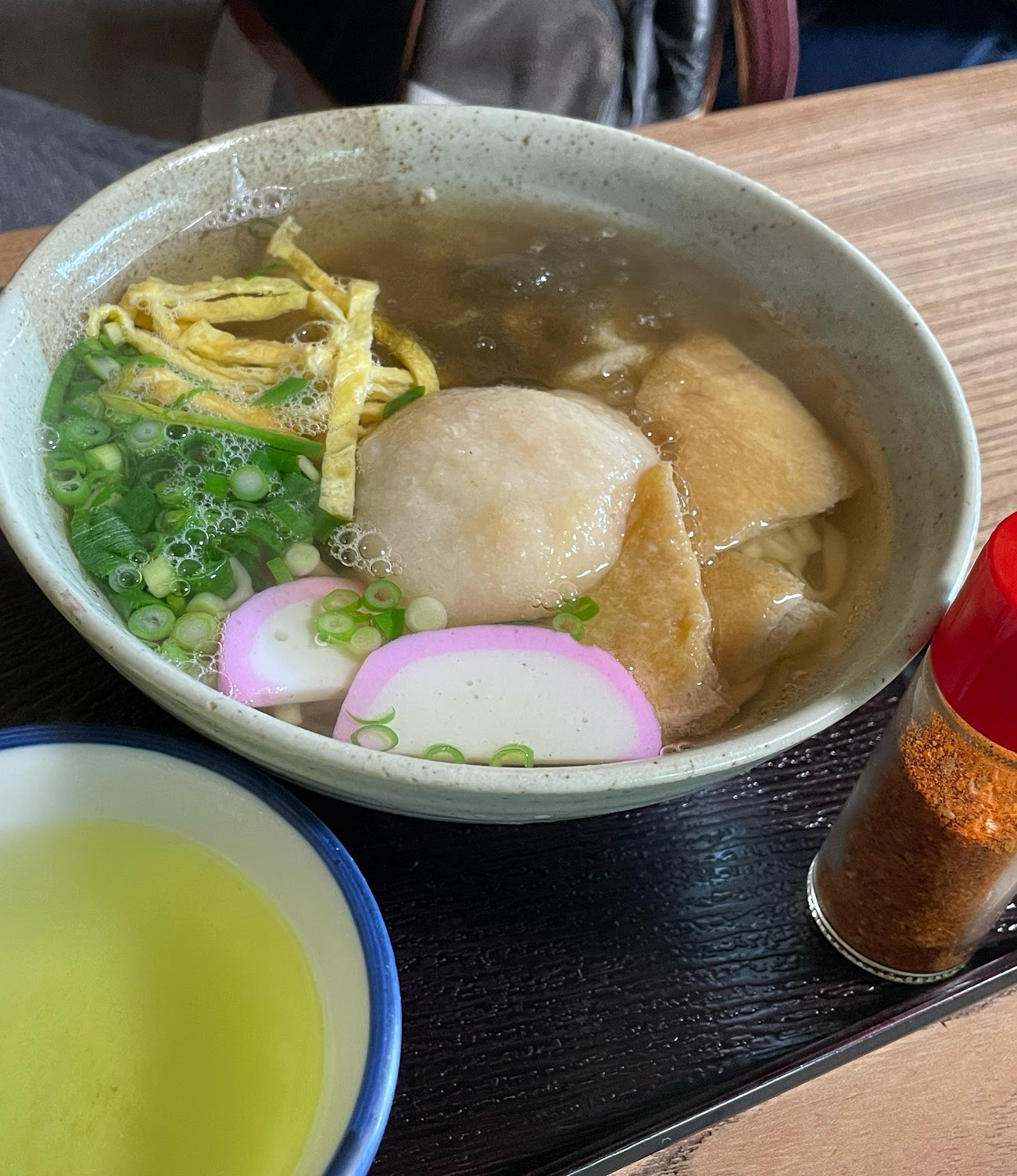 離開大聖院往碼頭方向走,經過光明院, 紅色的五重塔,聳立在忽然間天晴的藍天下,1407年建造的塔結合了中國與日本建築樣式。這時肚子也餓了,島上的寒風颳來還是冷冽,吃上一碗熱騰騰的蕎麥麵和麻吉湯,再加上一杯熱茶,脾胃都溫暖了再繼續探訪宮島風光。