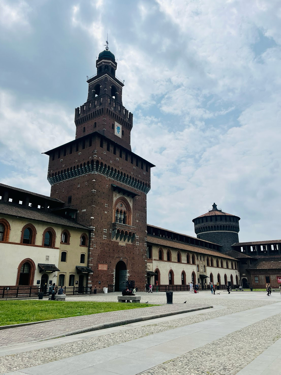 不免俗的還是要來看看米蘭的中世紀城堡 - 斯福爾扎城堡 Castello Sforzesco, 曾經是統治米蘭的斯福爾扎家族的居所,現在為博物館。在第二次世界大戰期間的1943年,米蘭遭到盟軍轟炸,該城堡受到嚴重破壞。戰後作為博物館使用,包括古代藝術博物館、家具博物館、樂器和應用藝術博物館、考古博物館埃及和史前部,不過著最名的還是斯福爾扎城堡畫廊,藏品包括米開朗基羅最後的雕塑作品Rondanini Pietà和達芬奇的特里沃爾齊奧手稿原稿。但是我們這次並沒有機會進去參觀,只能說服自己總要有些遺憾,留給下次來米蘭的時候完成。
