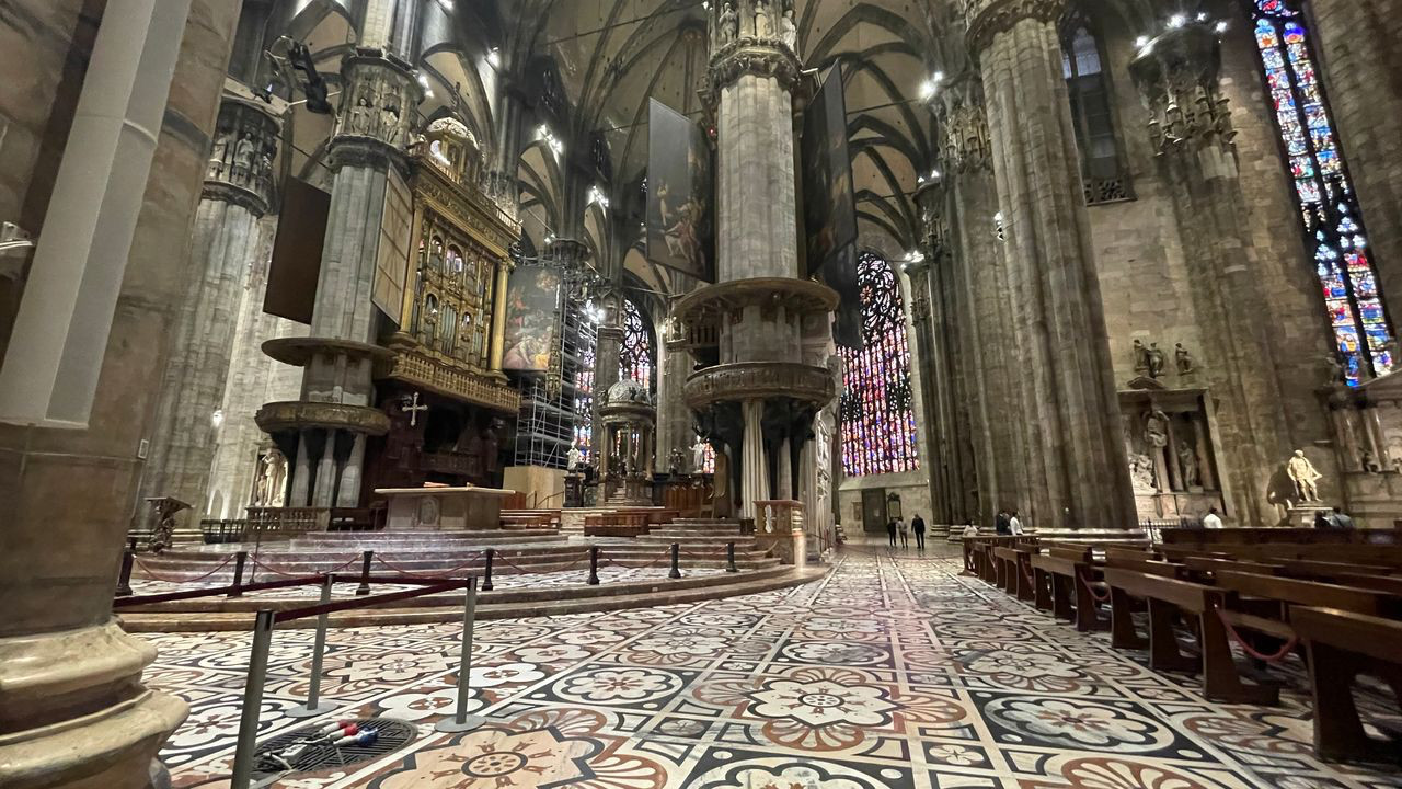 艾曼紐二世迴廊其實當初就是建來銜接歌劇院和米蘭大教堂的,所以,一從迴廊出來,就是名列世界第五大教堂 - 米蘭大教堂(Duomo di Milano)。是全球最大的哥德式建築,也是義大利最大的教堂。據傳達文西曾在此發明了升降機,以修建高聳的教堂。當年拿破崙更在此加冕自己為義大利國王。