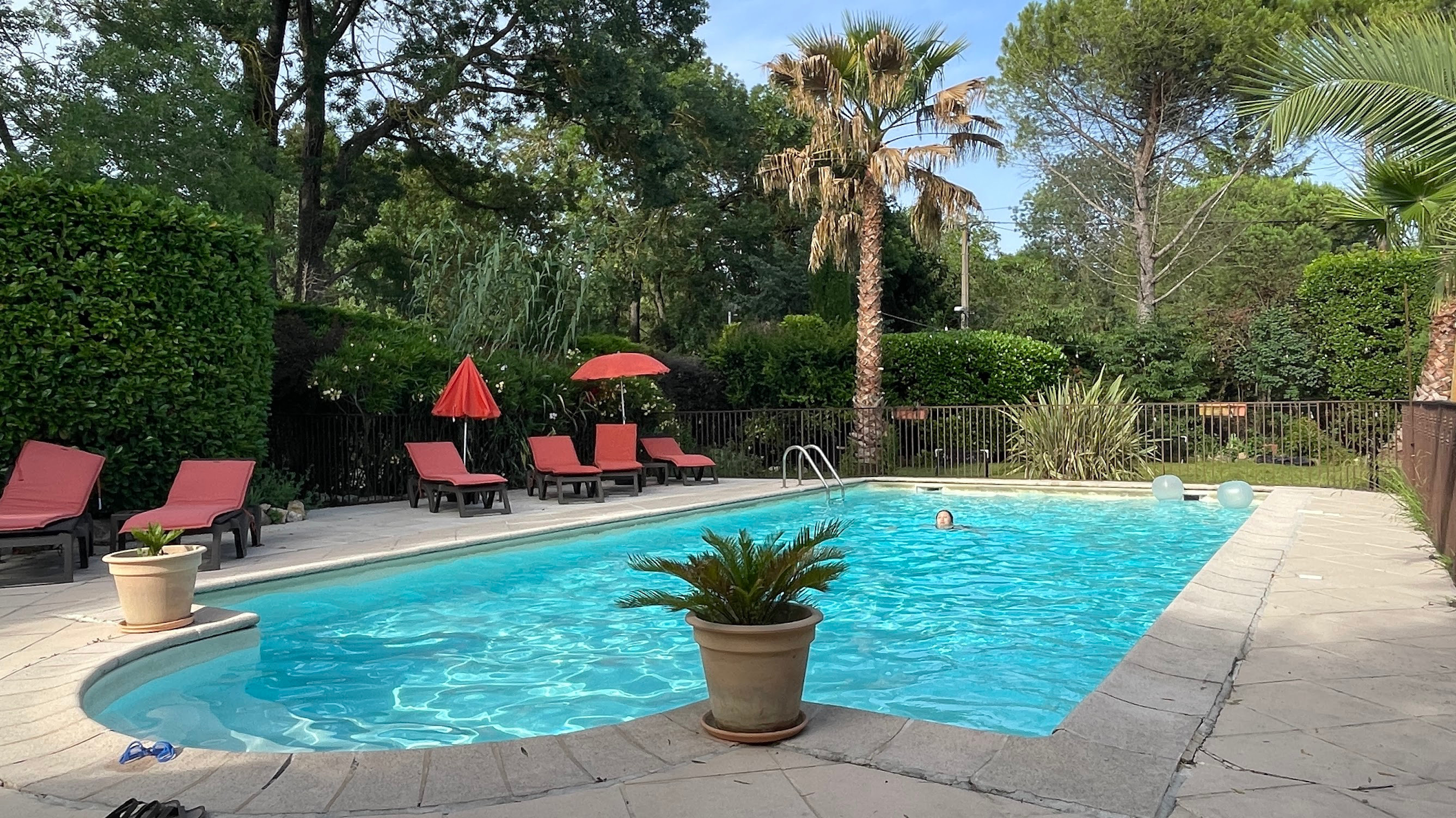 接著我們來到瓦爾邦(Valbonne),入住一間位在森林邊的農舍改建旅館。旅館有個泳池,燕興奮跳進泳池解暑,結果Tony英勇地跳水去救踩不到池底的女兒,口袋裡的行動Wi-Fi分享器和錢包全都泡湯了。雖然早餐是自助式、用料也很講究,好吃,但價格不太親切。