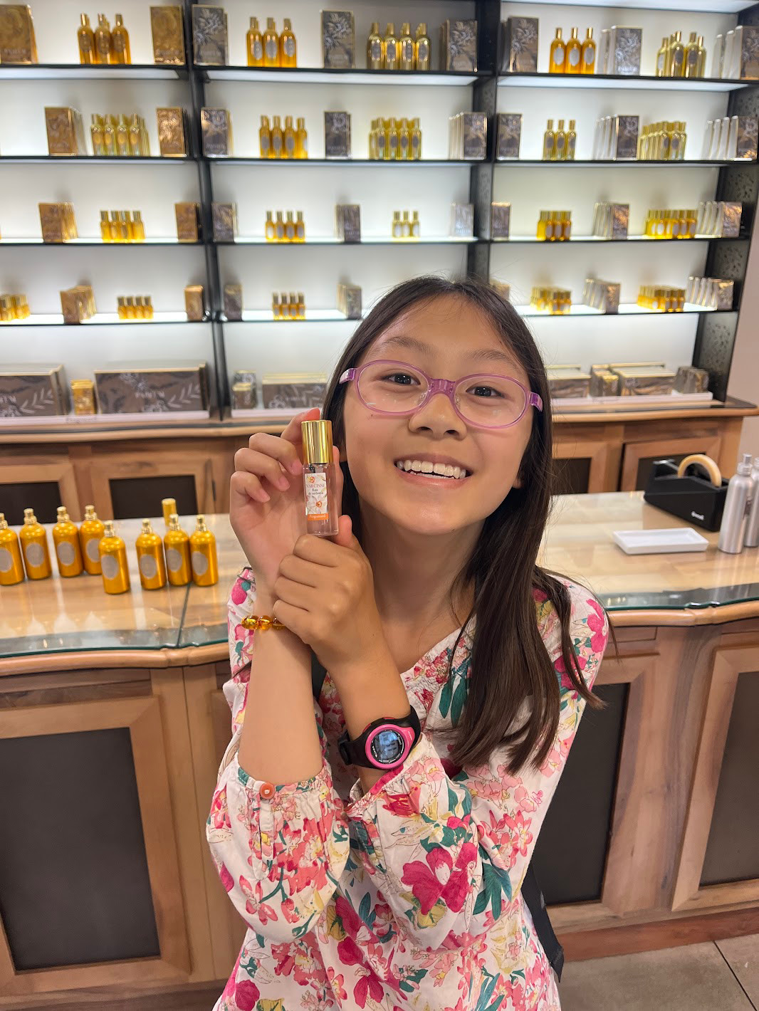 我們還親自體驗了調製淡香水(eau de toilette)的樂趣,真的超好玩!不但學到怎麼搭配前調、中調和後調,還能帶著自己調出來的香水當作紀念品。燕燕對她最後完成的香水超級滿意,一路上都開心地拿著聞,彷彿成了小小調香師呢!