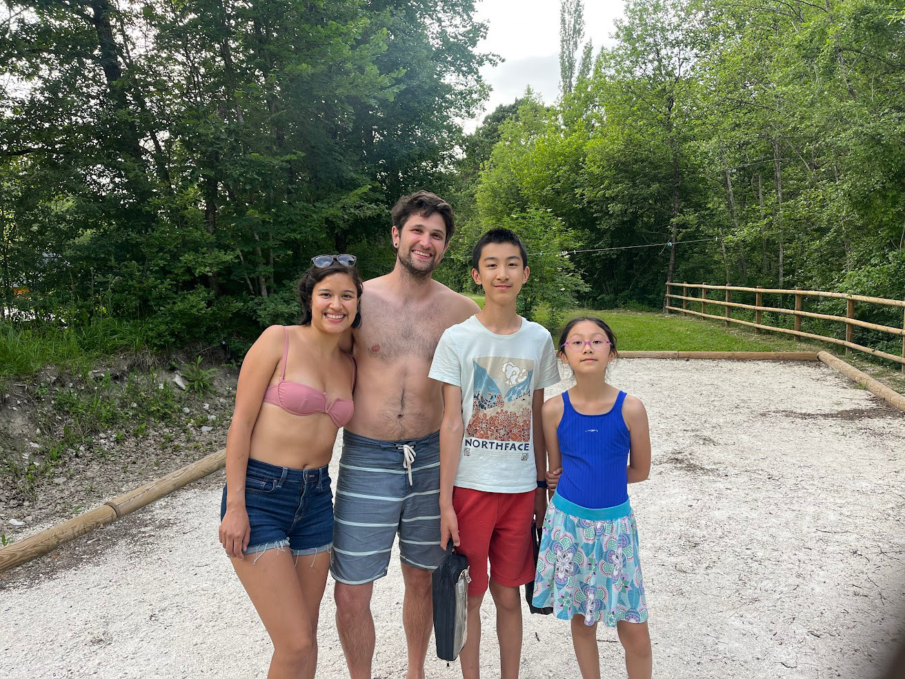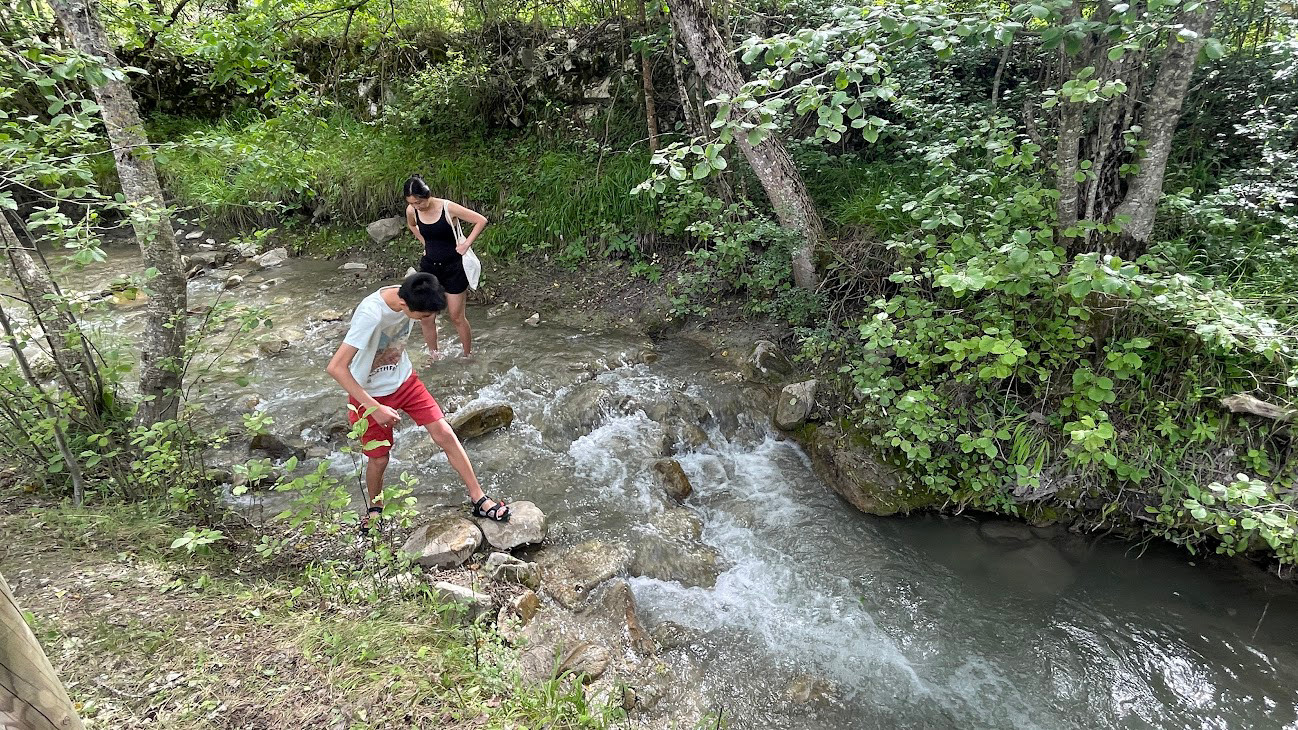 傍晚時分,不是在營區泳池裡跳來跳去,就是跑到附近的小溪邊玩水降溫。還和營區裡認識的Marque 和 Angeline 一起玩起了法式滾球(Pétanque)。和當地法國人一起玩法式滾球,是這趟旅程中非常美好的回憶之一。