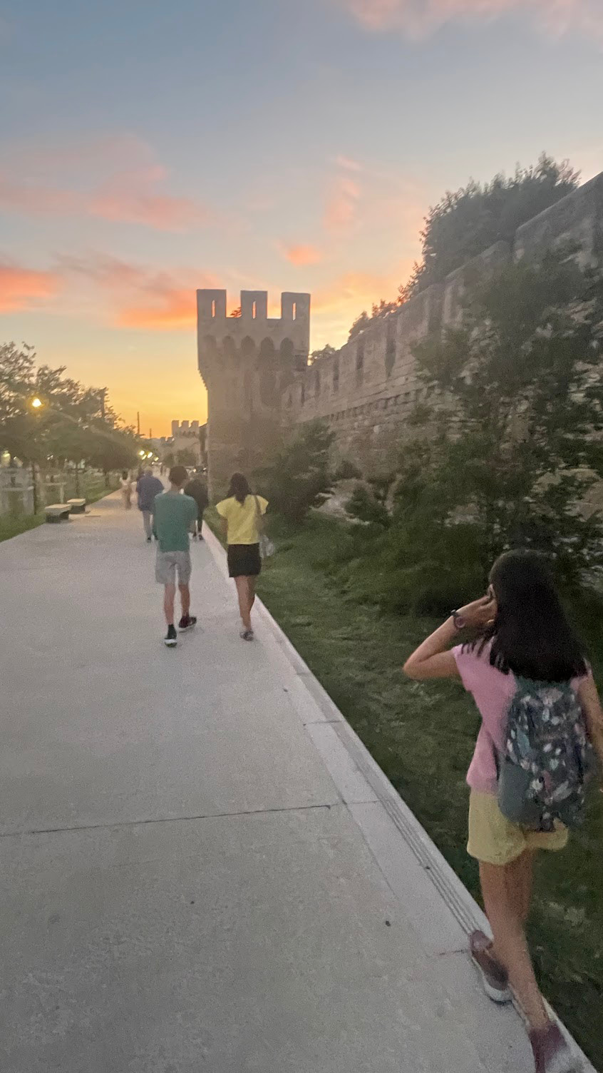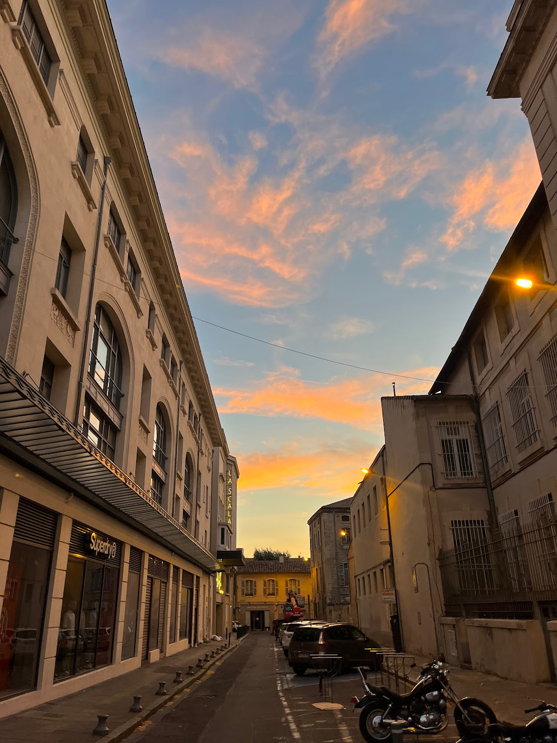 傍晚的天空染上夢幻的玫瑰色,浪漫得像不真實一般。尤其是在像亞維儂這樣充滿歷史氣息的小鎮中漫步,整個氛圍更添詩意與魔幻感。