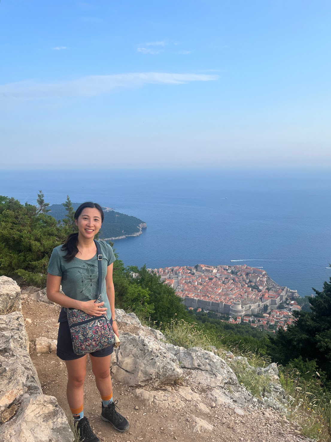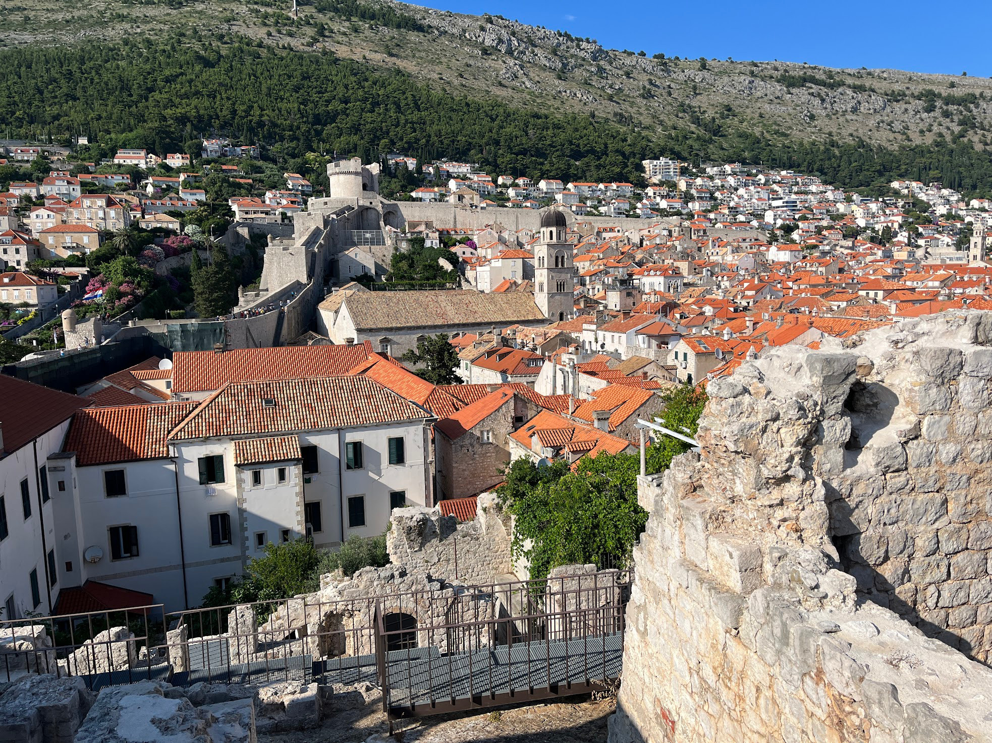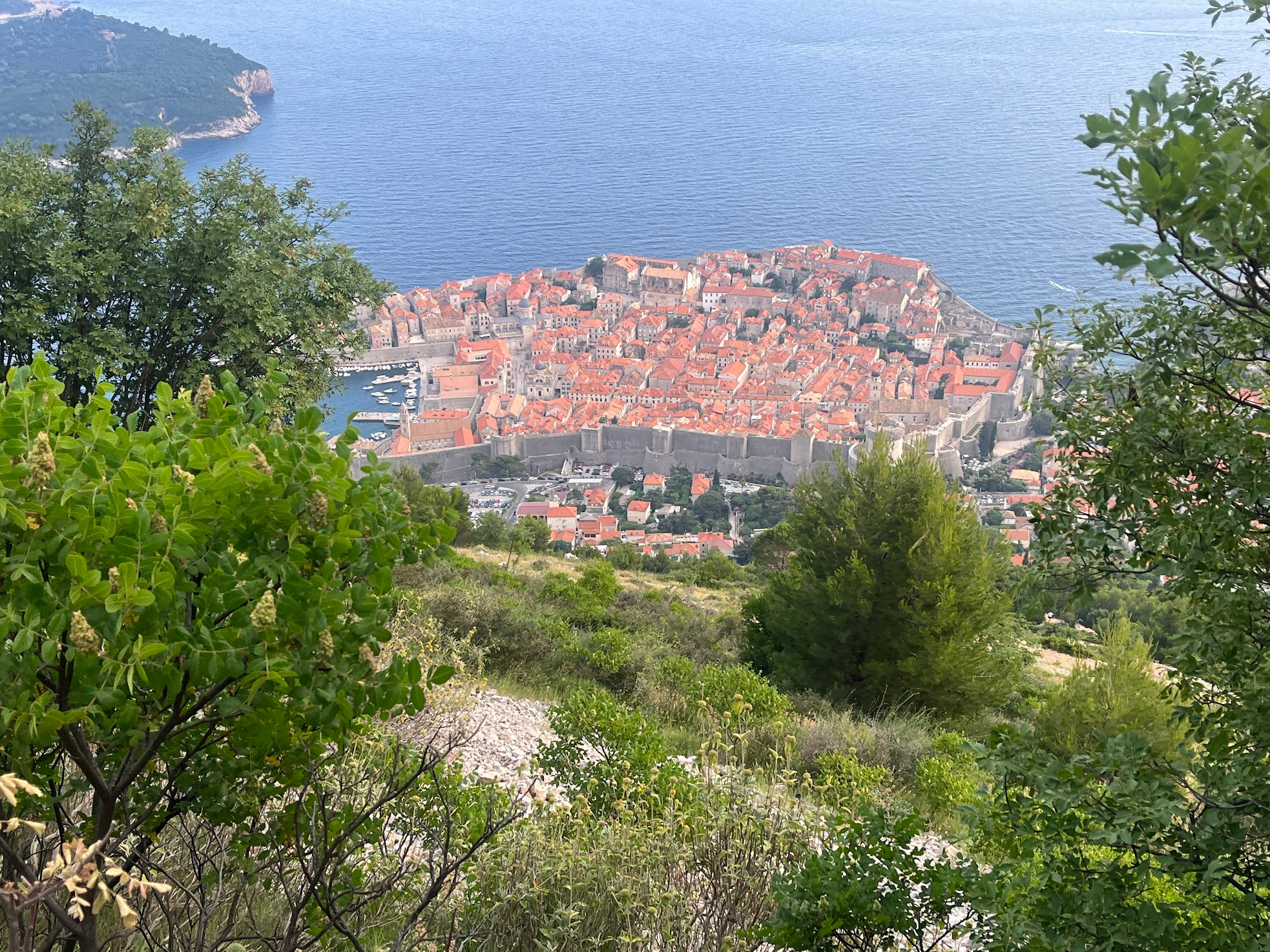 一路氣喘吁吁,但當我終於抵達山頂,所有辛苦都變得值得。整個杜布羅夫尼克古城、紅瓦屋頂、蜿蜒城牆、港灣,甚至遠方的島嶼全都映入眼簾。