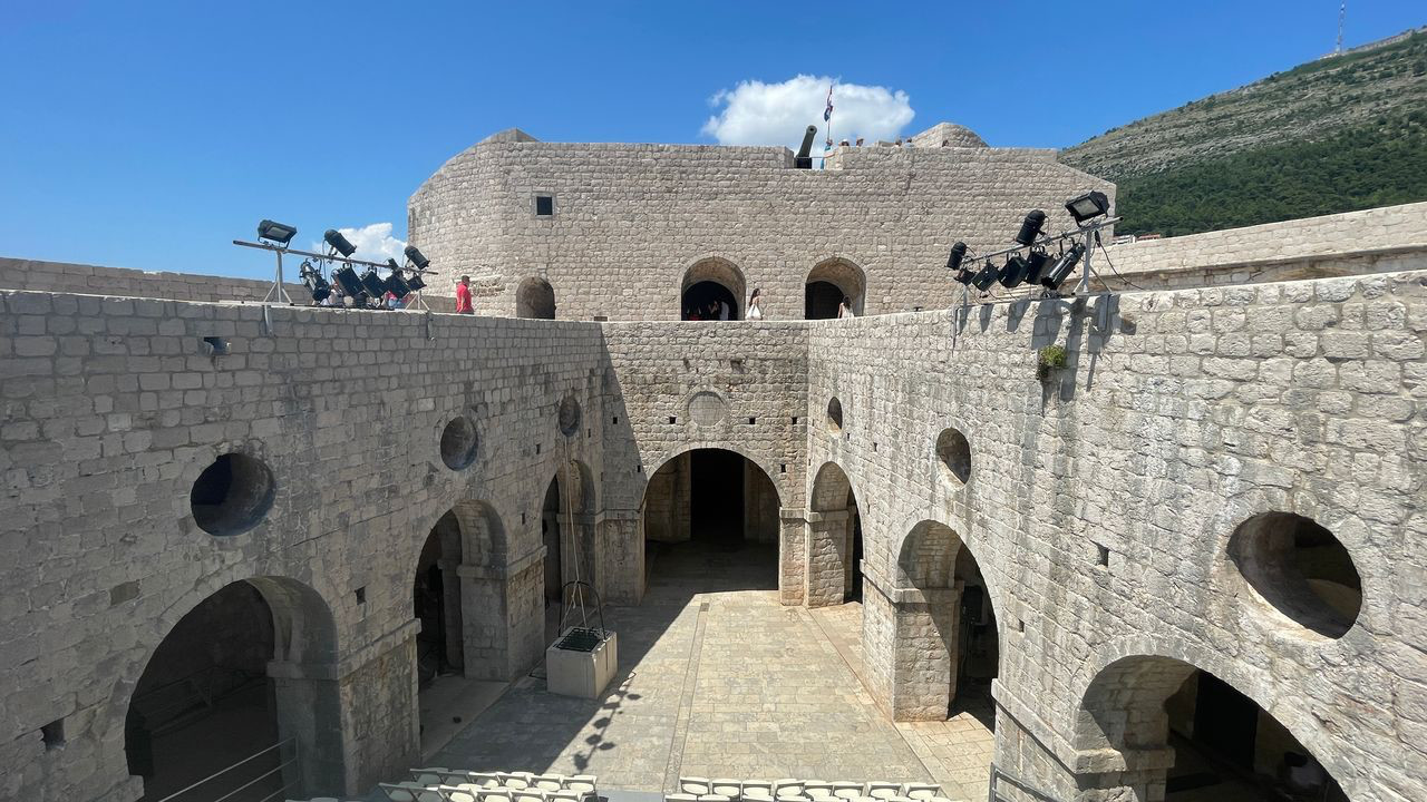 說到洛夫列納堡壘(Fort Lovrijenac),我們也爬上了這座坐落在城牆西側山丘上的古堡。現在碉堡內部被改造成戶外表演舞台,空間雖然不大,裡面沒什麼特別可看的展覽,但登上碉堡的高處,視野非常棒,可以俯瞰整個西港和古城牆,感受到當年守護這座海上城市的重要防禦意義。